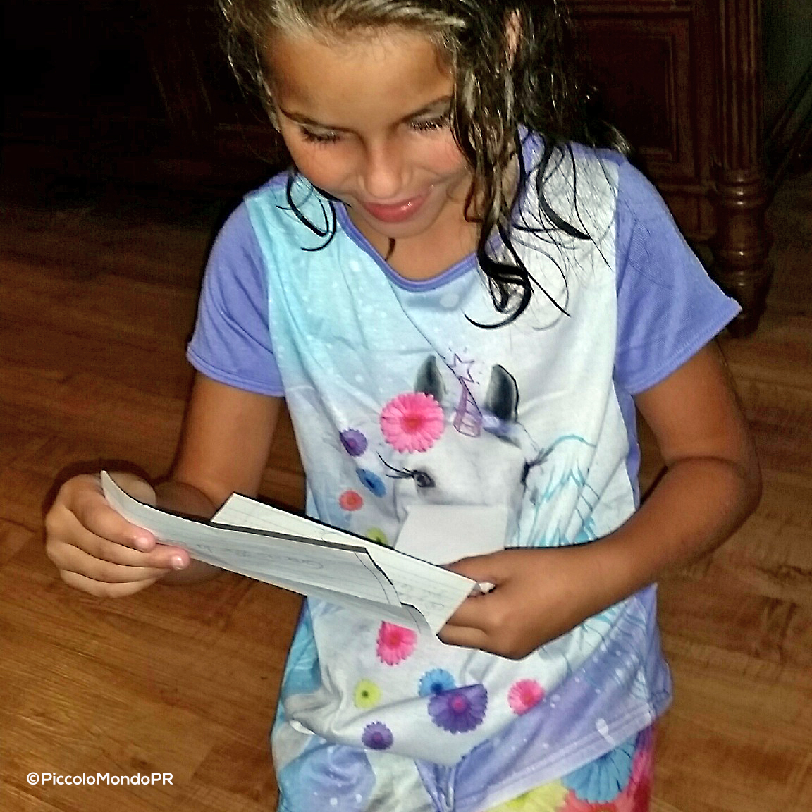 Su prima recibió su cartita bien contenta, una foto fue testimonio de ese momento. Ahora tendrán una actividad nueva para compartir entre ellas. Se divertirán escribiendo sus cartitas, teniendo conversaciones entre ellas pero además estarán aprendiendo destrezas de comunicación como redacción, lectura de otro idioma y ortografía y sobre todo a desarrollar destrezas de relaciones interpersonales. Esto les enseñará a ser empáticas, comprensivas y solidarias con las situaciones que compartan entre ellas.