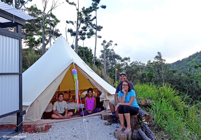 Somos una familia a la que le fascina acampar. Hemos compartido en este espacio muchas de nuestras experiencias de camping y hemos facilitado a nuestros lectores mucha información sobre cómo preparase para acampar y los lugares de camping en Puerto Rico. Lo que nos gusta del camping es la sensación de sentirnos en medio de la naturaleza, disfrutando su esplendor y la experiencia de tener contacto inmediato con la flora y la fauna que nos acompaña. Para acampar hay que prepararse bien y a veces uno se siente que está preparando una mudanza. Cuando vas de camping hay que cargar con todo lo que usas en tu vida diaria… desde la ropa y los enseres de cocinar hasta la almohada y las toallas de baño, que si se te quedan en casa no la pasarás tan bien. La intensa preparación y cargar todo el equipo de camping no es una experiencia agradable para todo el mundo. Hay personas que les gustaría acampar pero no lo hacen por evitar todo el trabajo de llevar y montar el campamento. Otros tienen la percepción de que en un camping no existe la comodidad. Pero imagina que pudieses ir de camping con solo un bulto de ropa y una nevera y que el sitio de acampar sea un lugar bien arreglado, con la caseta ya montada y con comodidades. Pues ese concepto es lo que conocemos como glamping.