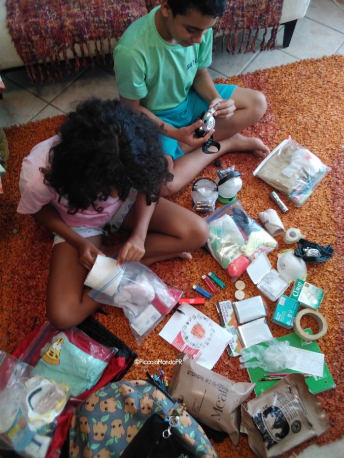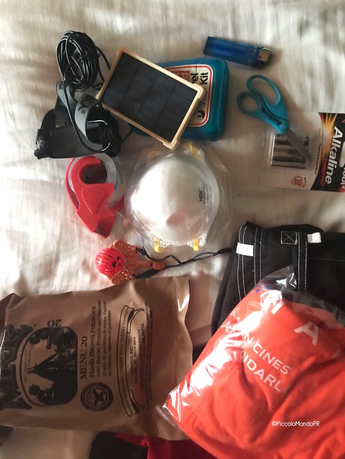 Debemos preparar mochilas de emergencias para cada miembro del núcleo familiar. De igual manera tener otros bultos extras para el carro, si es que estamos fuera del hogar. Nosotros teníamos unos ya preparados pero tuvimos que revisarlos para sustituir alimentos y medicamentos expirados. Aquí algunos artículos que debe tener el bulto:
