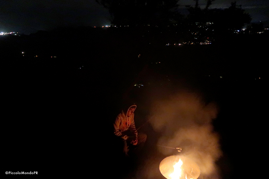 La otra plataforma de madera con caseta es La Plazoleta de Lucas, donde los chicos durmieron. En la parte baja de la plataforma hay un área de fogata con espacio para sentarte. Esta plataforma es más grande y posee una mesa con banco al igual que un espacio de barbacoa. Allí cocinamos al carbón y comimos juntos en la mesa disfrutando de las vistas y la brisa. Ambas casetas tienen colchones muy cómodos y almohadas, además de iluminación solar afuera y linternas adentro.