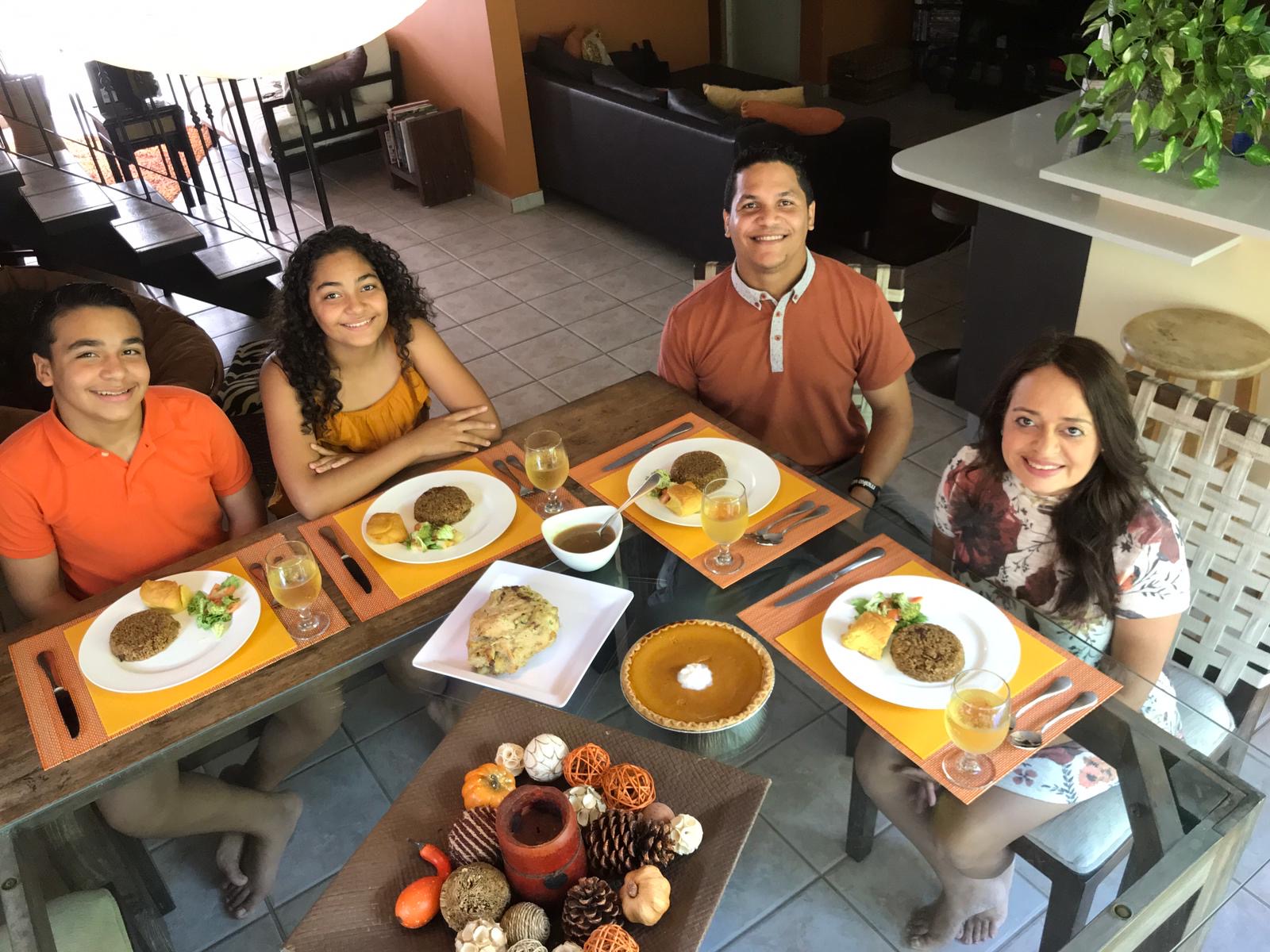 Hicimos una cena muy especial de acción de gracias y oramos en familia agradeciendo que estábamos bien. Cocinamos una pechuga de pavo rellena y Guillermo hizo un delicioso pie de calabaza. Ese día llamamos a nuestros familiares y la pasamos bien aún en la distancia. Mi familia es muy unida y durante esta pandemia se organizaban para tener llamadas grupales y celebrar juntos cada cumpleaños y fecha especial. Mariel enseñó a su papá como abrir y conectarse en una llamada de Whatsapp y le cantamos cumpleaños en vídeollamada grupal a mi suegra.
