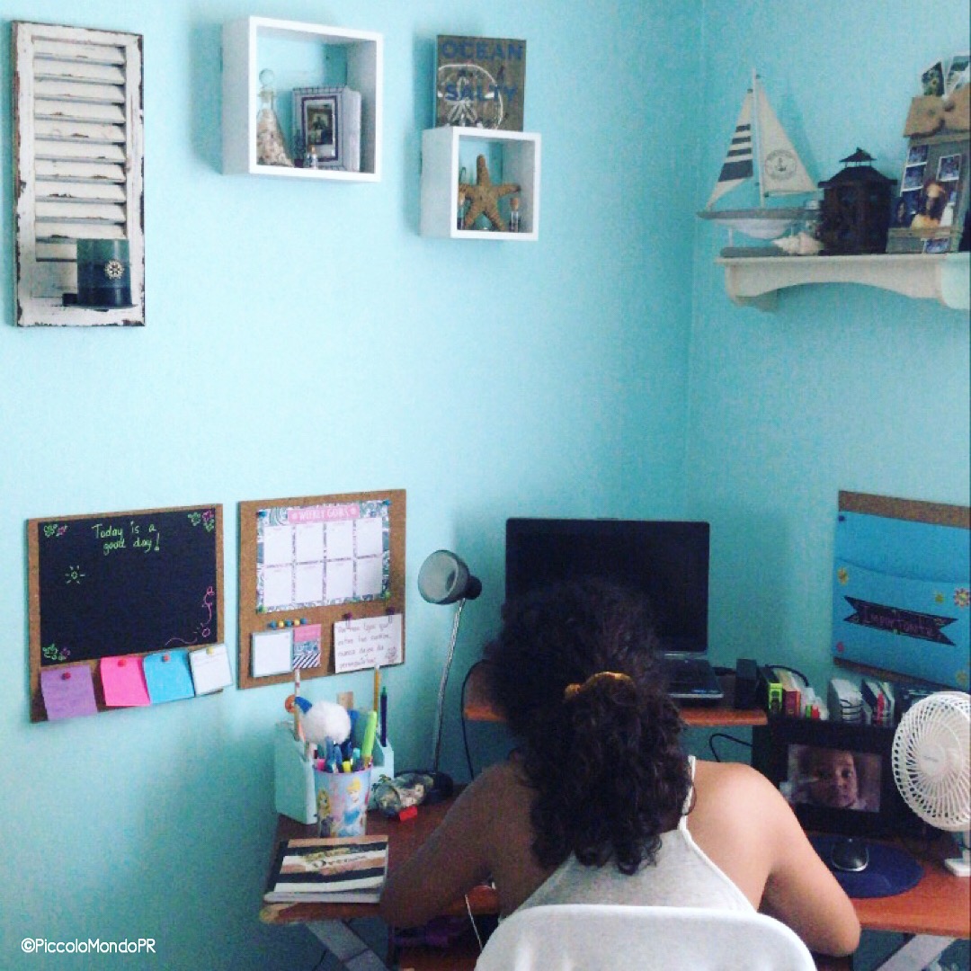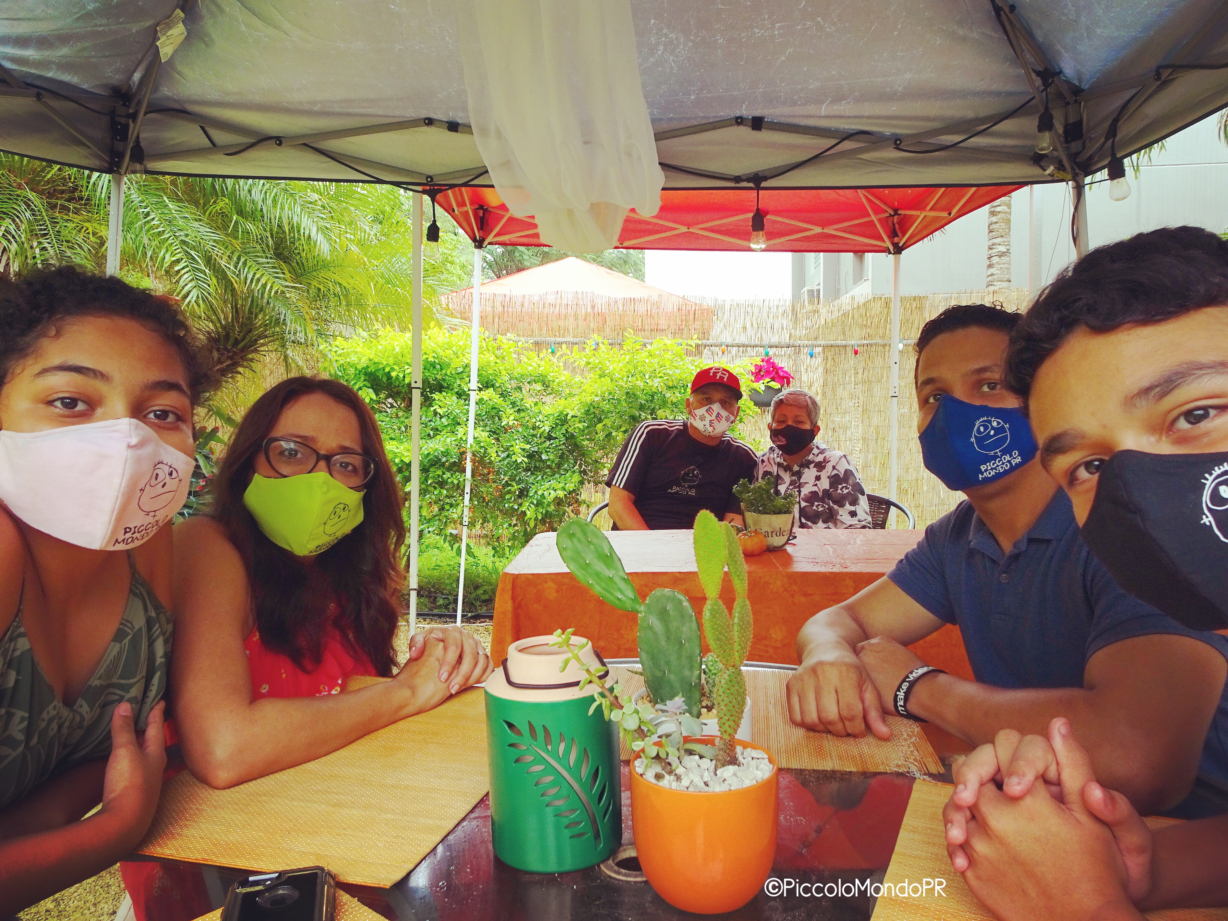 En este mes que marcó la llegada del COVID19 a la isla y la implementación del toque de queda y la cuarentena también pasamos por un estrés adicional, la pérdida de un empleo sin el cual no podríamos cumplir con los gastos de vida de nuestra familia. Además del encierro y la pérdida de empleo, el cambio a clases virtuales de nuestros chicos fue un reto, pues en casa solo había una computadora portátil. Al quedarnos encerrados también pasamos por el estrés de no poder hacer las compras de comida en el supermercado. La primera compra en un supermercado fue mediante un app y se tardó un mes en ser procesada. Subsistimos con compras de hortalizas a pequeños negocios de nuestra zona y con los alimentos enlatados que nos habían sobrado de la temporada de huracanes. Además, Mariel se puso a inventar en la cocina. Una de las cosas que hizo por la imposibilidad de salir a comprar, fue crear plantillas de harina para comer burritos. Por otro lado, al quedarme en casa sin tener un trabajo decidí que era buen momento para crear nuevos proyectos con los chicos. Creamos PiccoloTeens y empezamos a divertirnos un poco y animarnos también. Un día creamos un mural de tiza en la calle frente a la casa, con un mensaje para alentar a que nos quedáramos en la casa. Además, empezamos a jugar juntos en casa, recordando los momentos cuando yo los cuidaba en el hogar cuando eran preescolares.