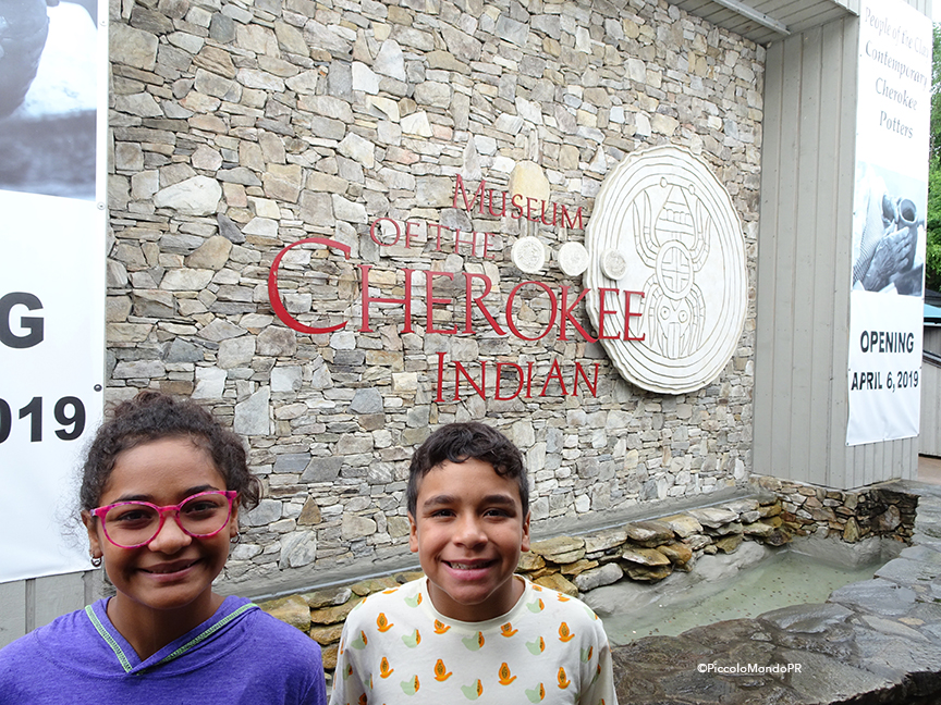Tuvimos la gran dicha de que el día que visitamos el museo en nuestro último día en Tennessee, había un festival cultural en las afueras. Pudimos conocer algunas artesanías, artefactos, vestimentas y tradiciones de los Indios Cherokee en persona. Había música y comida, y además pudimos hablar con algunos de los Cherokee que mantienen vivas sus tradiciones. Uno de ellos tiene una fundación para rescatar y enseñar el idioma Cherokee el cual se ha perdido por generaciones. Nos sorprendimos cuando nos dijeron que habían visitado Puerto Rico y tenían amistades en Vieques, lugar que les gustó mucho. Nos dieron una gran charla de cómo viven, sus vestimentas y objetos de caza y de defensa. Además del recorrido del Museo puedes pasar por la tienda que presenta una amplia variedad de obsequios, accesorios portátiles y coleccionables, incluidas las artesanías Cherokee de los residentes del área.