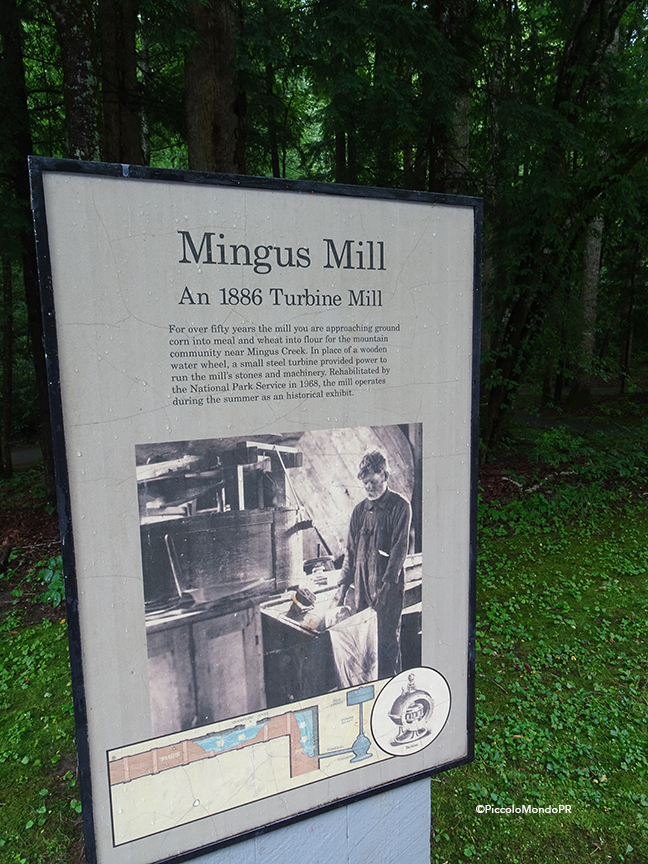Construido en 1886, este histórico molino utiliza una turbina accionada por agua en lugar de una rueda hidráulica para impulsar toda la maquinaria del edificio Es un gran molino aún funcionando por agua para moler maíz, que queda a media milla al norte del Centro de visitantes de Oconaluftee en Cherokee en la US 441. Los terrenos están abiertos todos los días. El lugar está para demostrar cómo se muele el maíz para obtener harina de maíz, que está disponible para su compra. Desde que llegas al lugar el aroma es como si estuvieran haciendo pancakes.
