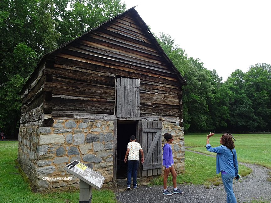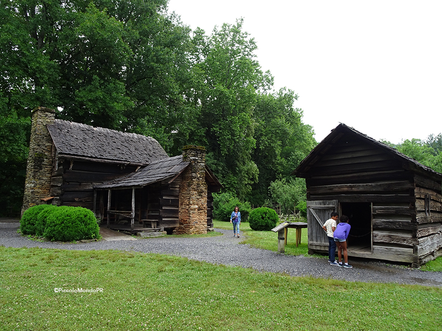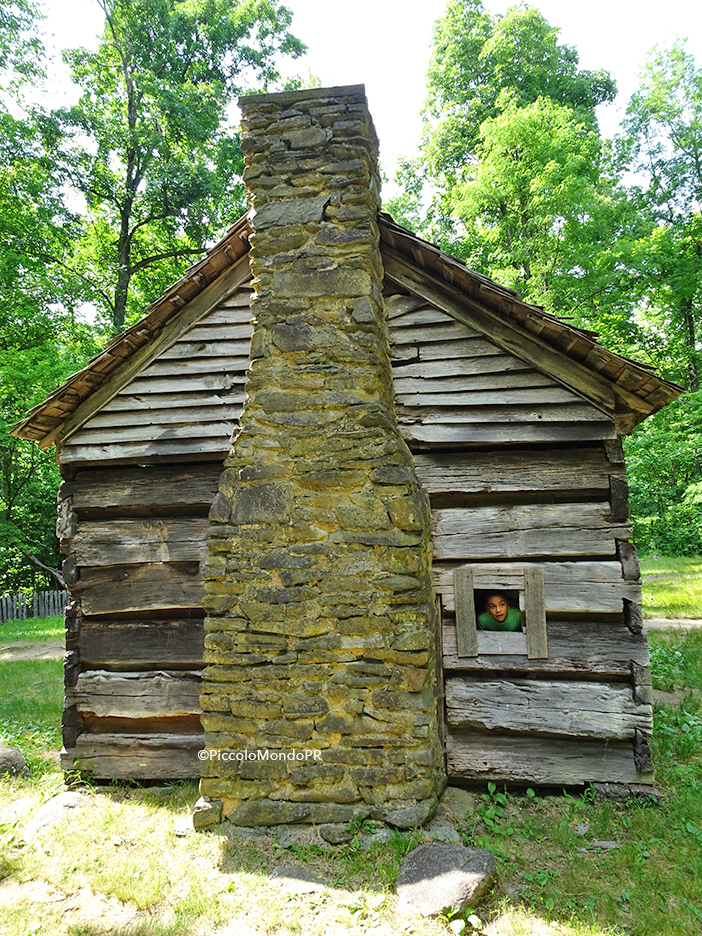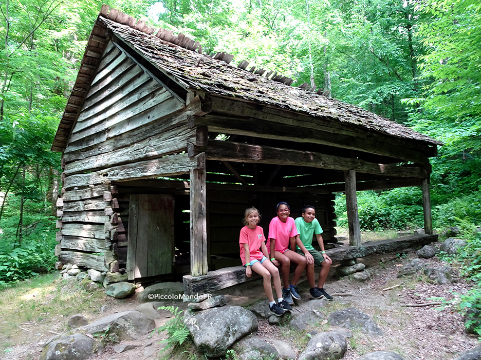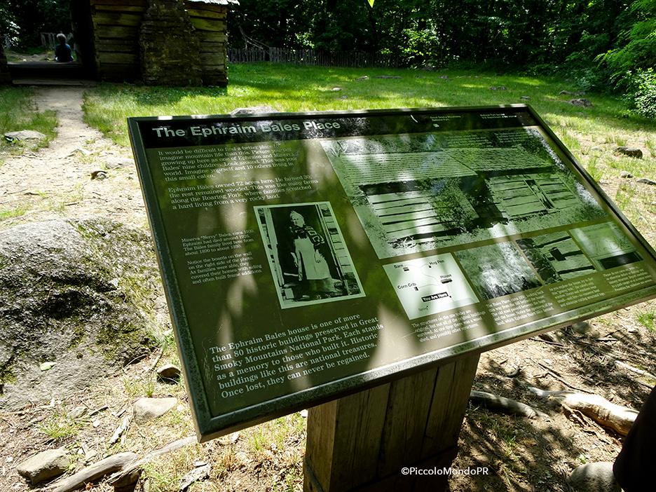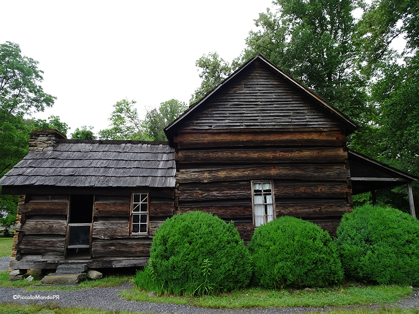 En el trayecto por las carreteras del bosque descubrimos una antigua casa, conocida como la casa de Ephraim Bales, hermano de Jim Bales, cuyo lugar está justo al final de la calle por Gatlinburg. Son cabañas antiguas que aún se conservan de los antiguos habitantes. Puedes observar cómo se vivía en esos tiempos en las montañas. Es una pequeña parada para observar el pasado y ver estas estructuras de madera y piedras. Nos llamó la atención la escala de la casa.