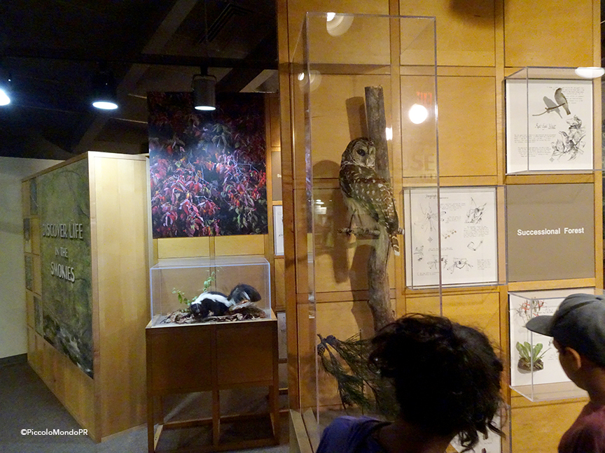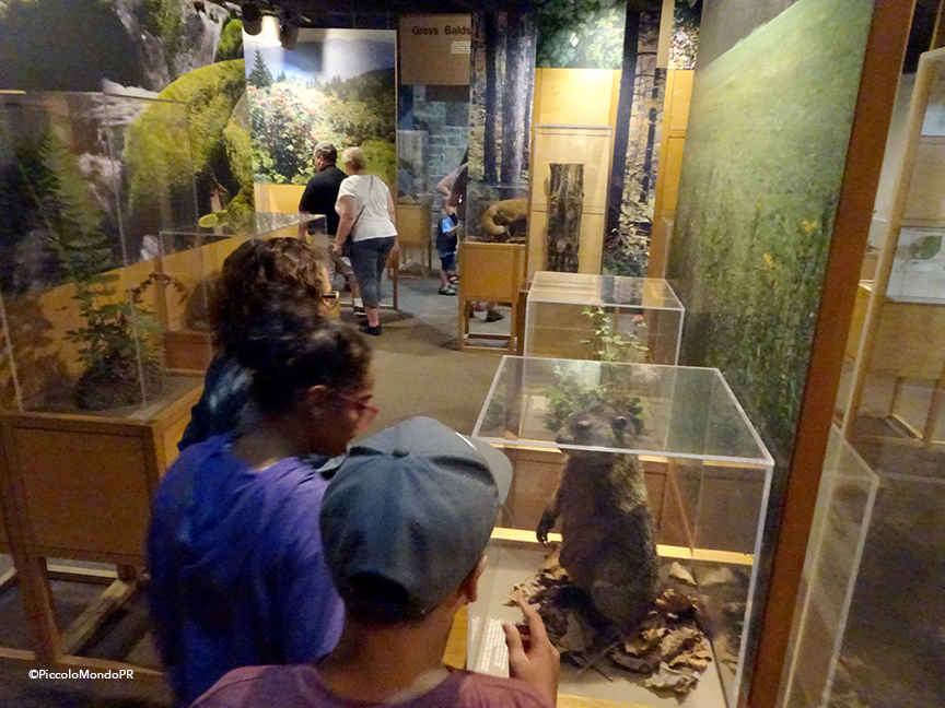 El Centro de visitantes de Sugarlands tiene todas las respuestas a sus preguntas sobre la planificación de su viaje al parque nacional. En el centro de visitantes, hay varias exhibiciones extensas de historia natural, una película gratuita de 20 minutos sobre el parque nacional y un centro de información. Hay varios senderos naturales cercanos con cabañas históricas y cascadas para visitar y disfrutar. La instalación incluye una librería y una tienda de regalos. Aprendimos mucho sobre las especies e historia de los Smoky Mountains y aprovechamos para hacer una caminata hacia una pequeña cascada desde el centro de visitantes.