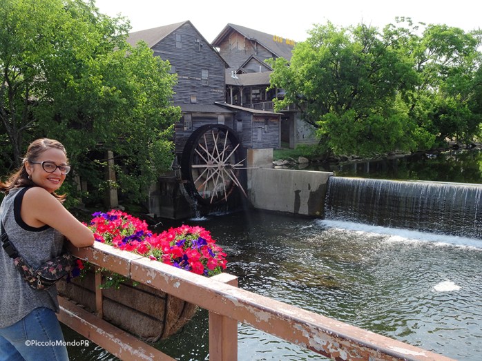 Este es un molino construido en 1830 en Pigeon Forge y todavía funciona hasta el día de hoy. Mientras los nenes fueron a Dollywood, Mariel y yo nos fuimos a nuestro paseo en pareja, pues no podíamos irnos de Tennessee, sin probar su famoso whiskey y conocer más de su cultura culinaria y sus artes. Viendo el molino podemos conocer cómo los granjeros alguna vez emplearon lo mejor en tecnología hidroeléctrica del siglo XIX para moler harina y sémola. Además, apreciar cómo se hacían a mano la cerámica y los dulces. Junto al Old Mill se encuentra la tienda general, donde puede descubrir mermeladas caseras, jaleas, dulces de azúcar, aderezos para ensaladas y otros productos populares de la línea Old Mill Signature. Todo el paseo fue a pie, disfrutando de un lindo día en las riberas del río.