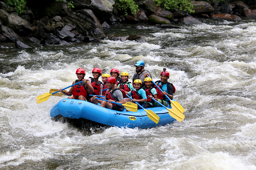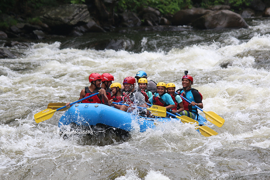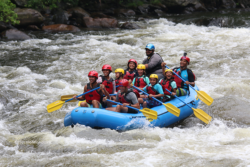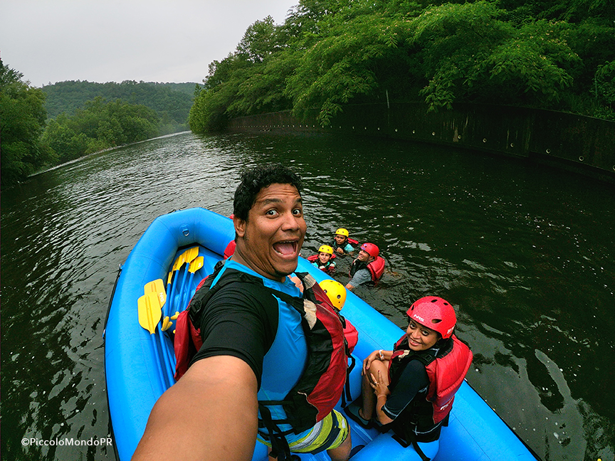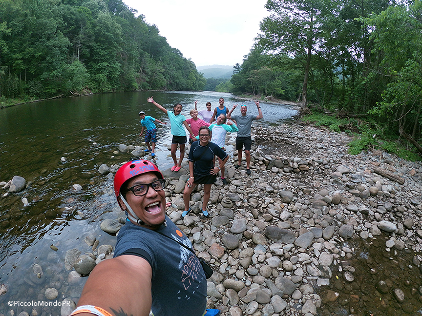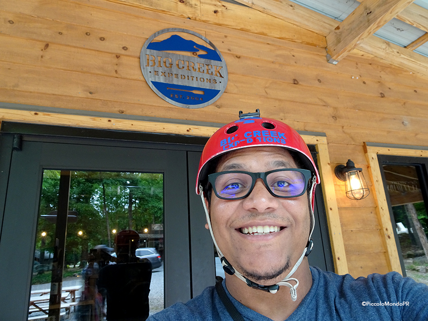 Una de las cosas que me llamaron la atención del viaje a los Smoky Mountains era hacer una balsada en el río. Nunca lo habíamos hecho y estábamos un poco nerviosos y ansiosos. Pero sabíamos que era una experiencia única en la vida y teníamos que hacerla. Buscando en las redes, entre varias alternativas encontramos Big Creek Expeditions. Tuvimos la oportunidad de estar todos en una misma balsa con mi hermana y mis sobrinos. Era la balsa más grande del lugar, nos dieron una charla y luego nos montamos en una guagua que nos llevó río arriba. Una vez que saltamos en la balsa y comenzamos a bajar por el río, fue mágico. Los rápidos fueron divertidos, el guía fue increíble y nuestra aventura mejoró con toda la información interesante que aprendimos sobre el río y el área. Al final llegamos al lugar donde estábamos estacionados y buscamos unas fotos que nos tomaron cuando nos lanzamos a la aventura.