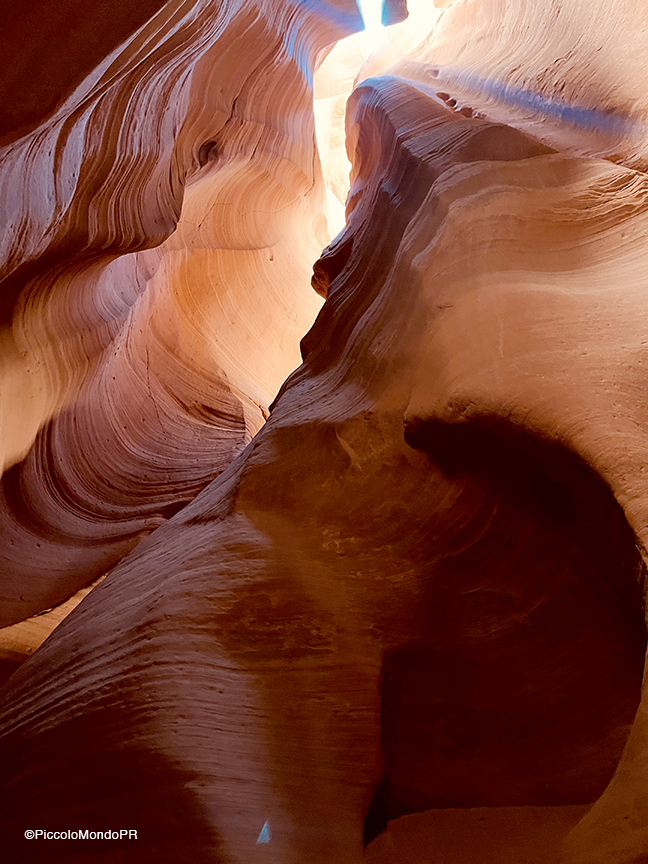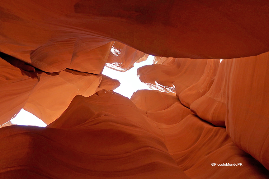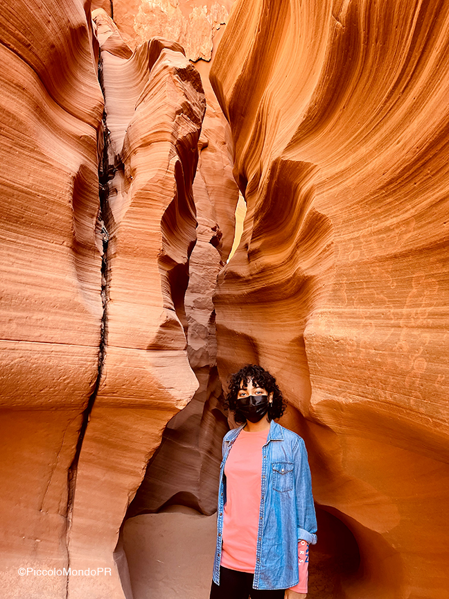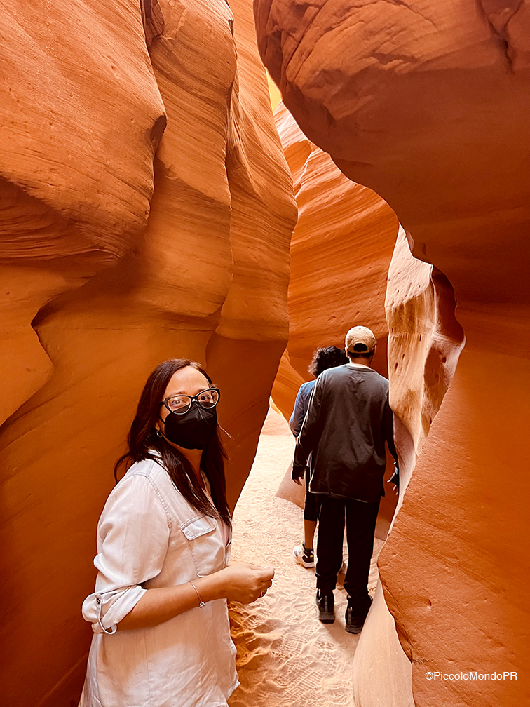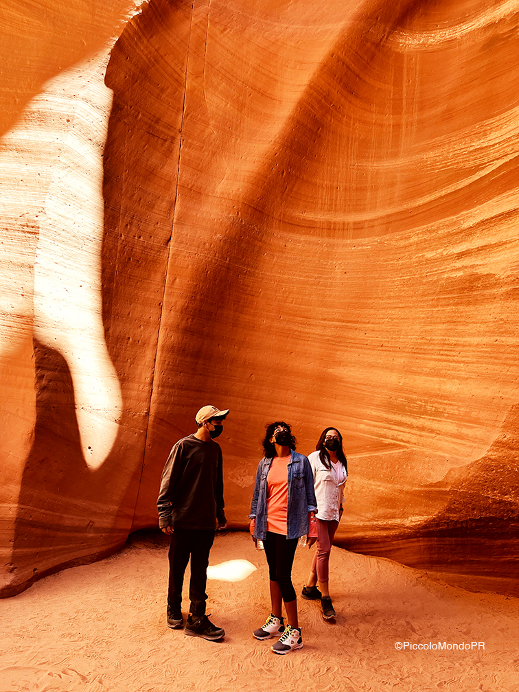 El cañón del Antílope es un cañón de ranura y uno de los más visitados y fotografiados del mundo. Está cerca de la ciudad de Page, en el condado de Coconino, en el norte del estado de Arizona. Este cañón está situado en una reserva de indígenas navajos. Tomamos el recorrido guiado de Antelope Canyon X de Taadidiin Tour, porque es económico y más duradero que el recorrido original de los Antelope Canyon lower o upper. Vimos algo similar al del otro sitio y lo pudimos disfrutar con mucha paz y tranquilidad en un espectacular recorrido que nos dio un joven originario del lugar. El lugar se llama Canyon X, porque entre las ranuras de rocas, puedes observar mirando hacia arriba un agujero que forma una X. El guía nos habló como estas ranuras coloridas se formaron entre arena, agua y viento, también la importancia e historia de este lugar en su cultura indígena. Tiene un costo de $50.00 por adultos y $40 para niños.