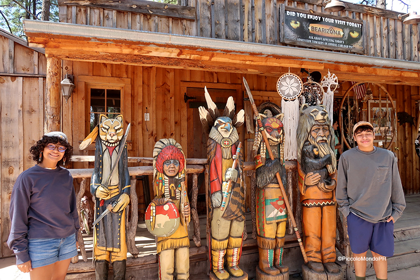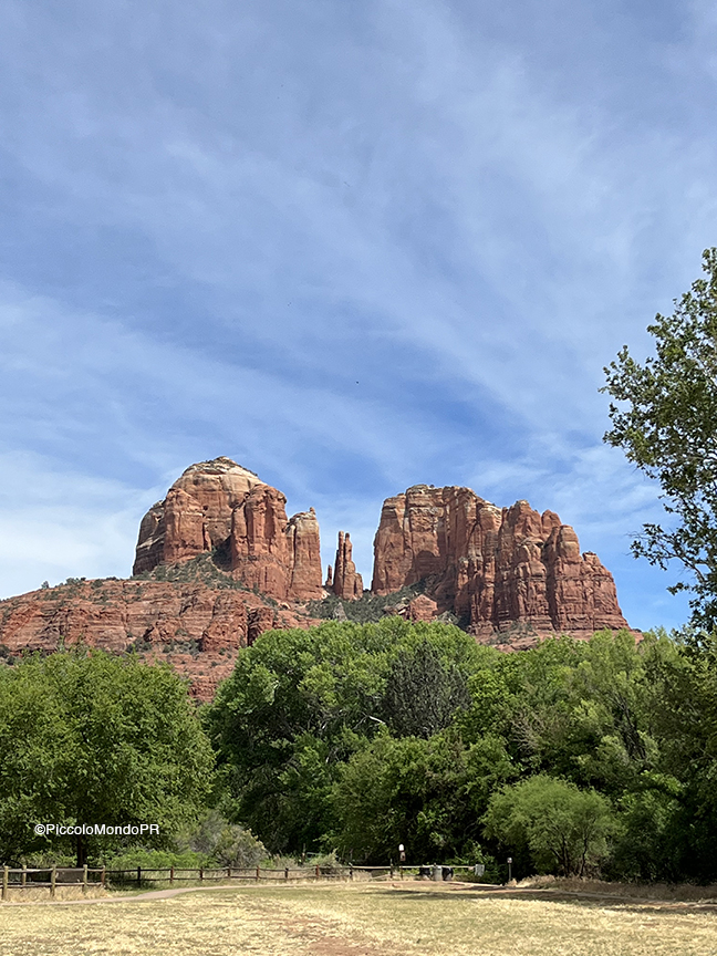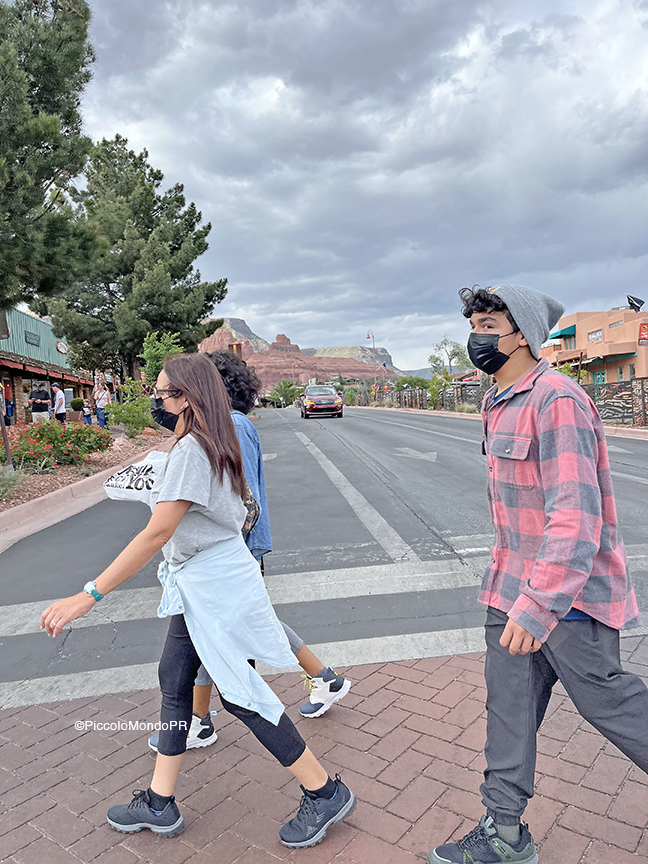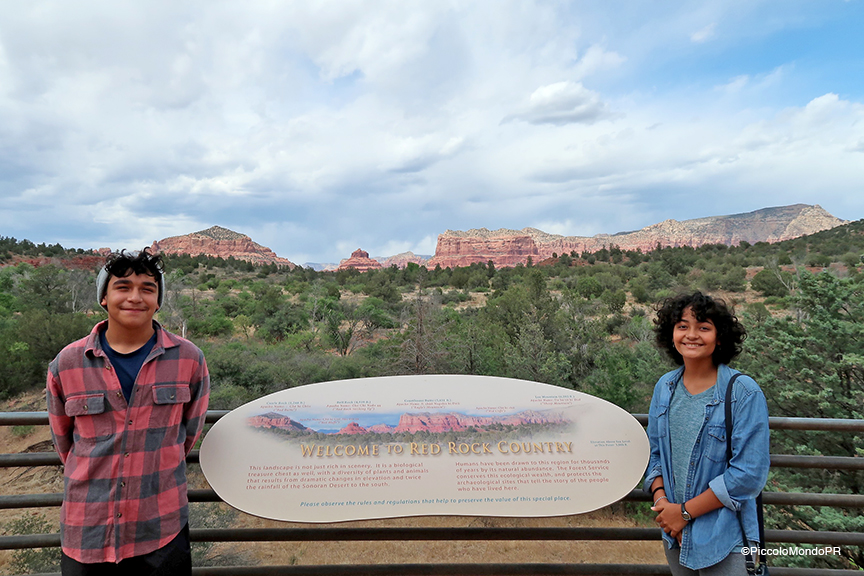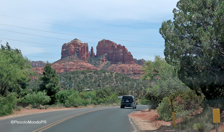 Esta fue la segunda vez que visitamos Sedona, la primera vez fue en el 2005 solos Mariel y yo. En esta ocasión regresábamos con los chicos. Sedona ha cambiado mucho desde la vez que fuimos. Visitamos los lugares a los que habíamos ido y pudimos ver cosas nuevas. Sedona quedaba a cuarenta minutos de donde nos estábamos quedando en Flagstaff. La ruta por acantilados de montañas es hermosa. Está rodeada de colinas de roca roja, cañones de paredes empinadas y bosques de pinos. Sedona se destaca por su clima templado y su animada comunidad artística. Tiene muchas tiendas de souvenirs, joyería y cerámica fabricada por los indios Navajos, restaurantes, spas y galerías de arte. Esta situada entre el Parque Estatal Red Rock, donde se pueden ver formaciones espectaculares de montañas o rocas, observar aves, hacer excursiones y picnics. Hay muchos sederos y veredas para hacer caminatas y llegar a lugares impresionantes o subir montañas, pero debe estar bien preparado. Cosas diferentes que hicimos en esta visita a diferencia de la primera, fue poder entrar al interior de la Holy Cross Chapel, visitar la exhibición del centro de información de Red Rock y bañarnos en el río en Crescent Moon Ranch donde puedes tener una vista del Cathedral Rock.