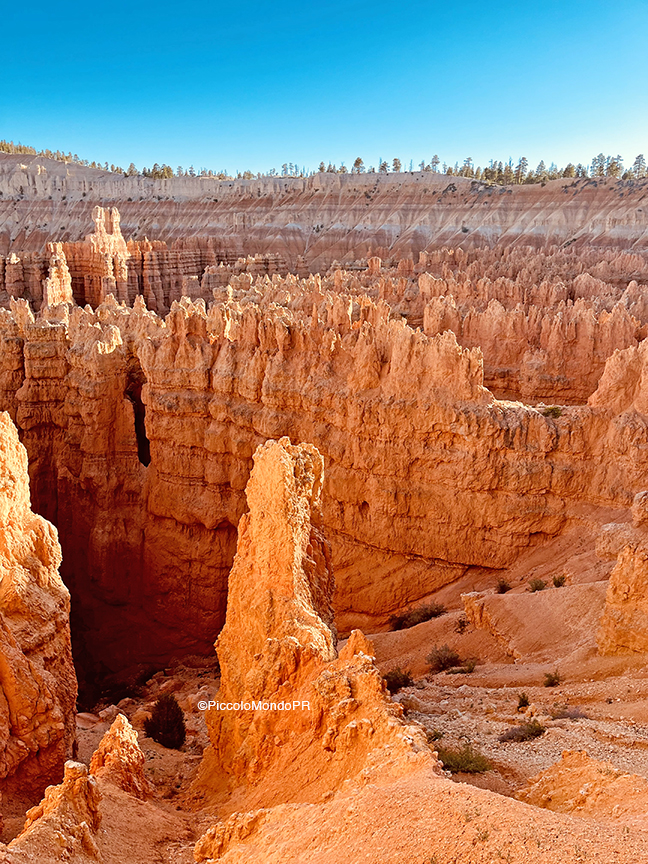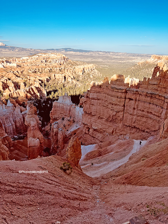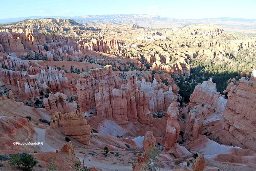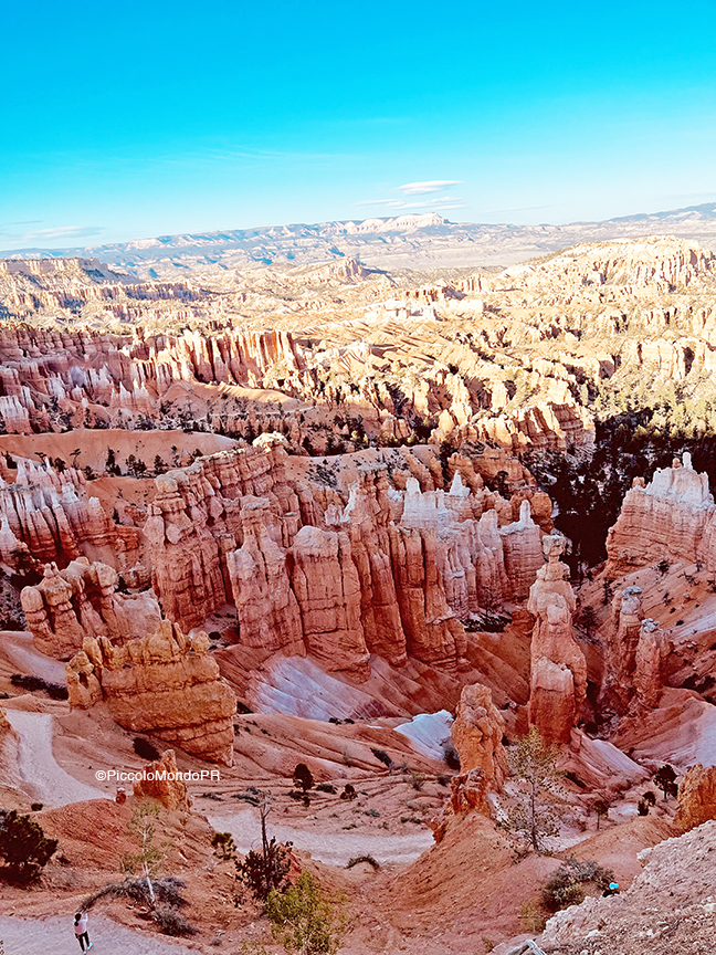 El parque nacional de Bryce Canyon es una extensa reserva del sur de Utah famosa por sus formaciones rocosas rojizas en forma de chimeneas de hadas, llamadas localmente «hoodoos». La carretera principal cruza el anfiteatro de Bryce, una depresión llena de estas chimeneas de hadas situada justo debajo de la ruta de senderismo Rim Trail. Desde que entras en automóvil puedes pasar por arcos de piedras. Entre los miradores destacan Sunrise Point, Sunset Point, Inspiration Point y Bryce Point. Las mejores vistas pueden contemplarse al alba y al atardecer. No olvides pasar por el centro de visitantes para conocer las historias de las formaciones. Una de las veredas más famosas es el Navajo Loop. Llegamos un poco tarde al parque nacional de Bryce, pero pudimos observar lo grandioso y maravillosa de sus formaciones al atardecer.