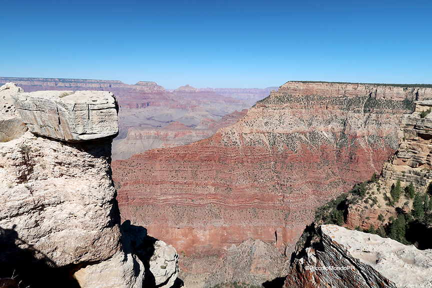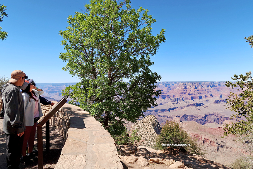 Después de dieciseis años regresamos al Gran Cañon y esta vez entiendo que lo vimos mejor ya que la primera vez en el 2005 hubo muchos fuegos y no había buena visibilidad . Se sentía bien recordar y volver para ver los escenarios de tanto esplendor y grandeza. Logramos recorrerlo y hacer varias paradas a nuestro ritmo, sin ningún recorrido pagado. Entramos por la entrada este, la carretera 64, y desde ahí empezamos la ruta. Llegamos a la torre de vigilancia Desert view, donde nos abastecimos con un almuerzo en un área de mesas al aire libre y descansamos. También tienen tiendas de objetos y accesorios nativos navajos. En nuestro recorrido en carro, paramos en diferentes puntos de vistas panorámicas hasta llegar al Visitor Center. Lo disfrutamos mucho y descubrimos su gran extensión por el río de colorado.