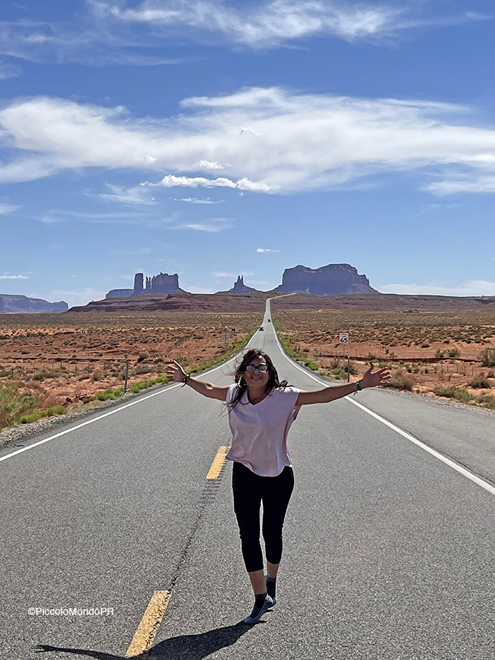 En la ruta de Arizona a Utah o viceversa, pasamos por la carretera 163 que cruza El valle de los Monumentos. Estas famosas formaciones en medio del inmenso valle, la vemos en la película Forest Gump en la escena cuando él decide terminar de correr. El valle está dentro de la reserva de los nativos navajo. Se puede apreciar bien desde el auto si vienes desde Utah a Arizona y hay una parada en la carretera para que puedas tomar fotos.