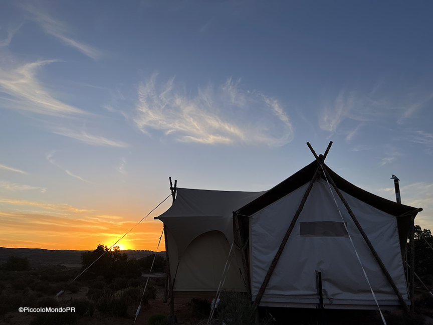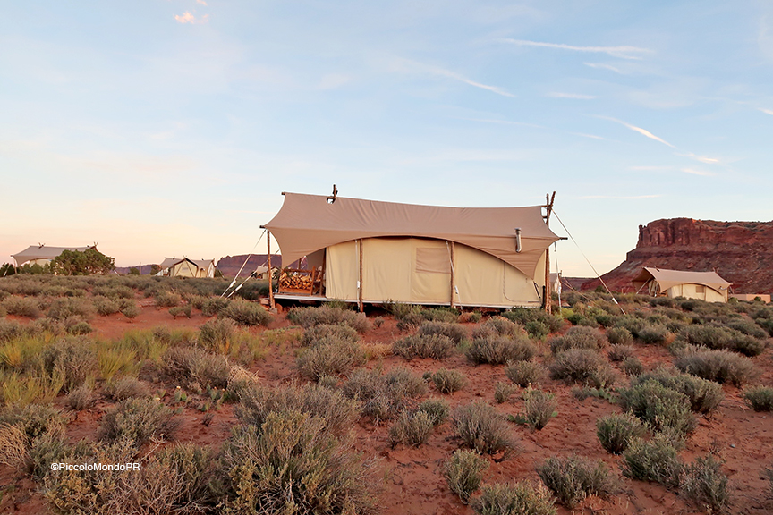 Este complejo turístico de carpas de lujo en el desierto se encuentra a siete minutos del parque nacional Arches y a trece minutos del centro de Moab. Las carpas cuentan con área de visitas y estufa de leña. Dentro de la caseta hay baños con agua caliente. La caseta tiene piso de madera elevado y patio, además de un balcón con vista al parque nacional. Algunas cuentan con sofá cama y pequeñas casetas tipis para que los más pequeños tengan una experiencia al aire libre. Los servicios incluyen estacionamiento gratuito, utensilios para barbacoa y una fogata. Se ofrecen desayuno y almuerzos de pícnic por un cargo adicional. Se pueden organizar actividades como escalada en roca, globo aerostático y caminatas guiadas por una tarifa adicional. Este concepto de glamping tiene ubicaciones en diferentes áreas entre Arizona, Tenneesse, Wyoming y Utah. https://www.undercanvas.com/