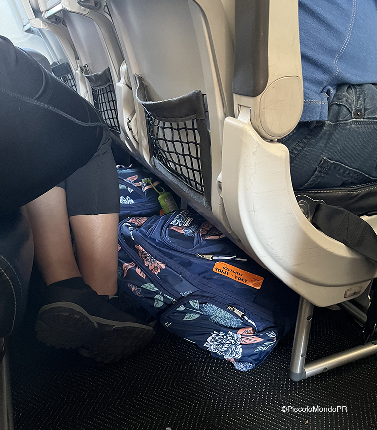 En este viaje de una semana, decidimos llevar pocas cosas y ropa. Nos fuimos preparados con ropa para hacer caminatas, para dormir y zapatos apropiados para hacer caminatas. Cada uno llevaba su propia mochila donde cupo. La ventaja es que la mochila se clasificaba como bulto personal ya que hicimos que cupieran en el área de abajo de los asientos. La mochila no puede pasar de estas medidas en pulgadas: 18 x 14 x 8 (TSA). En el lugar donde nos íbamos a quedar tenían lavadora y secadora. Esto nos permitió lavar y reusar las mudas de ropa.