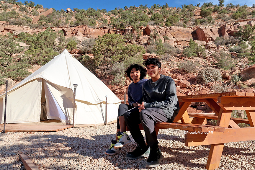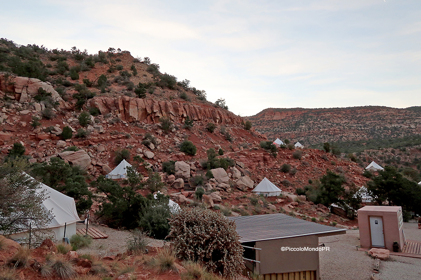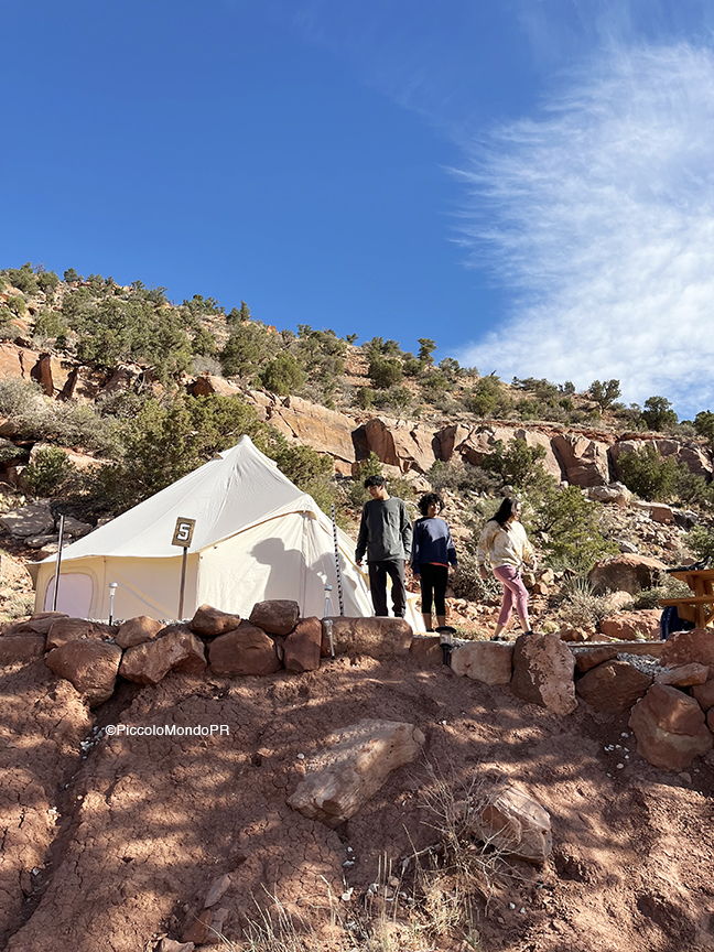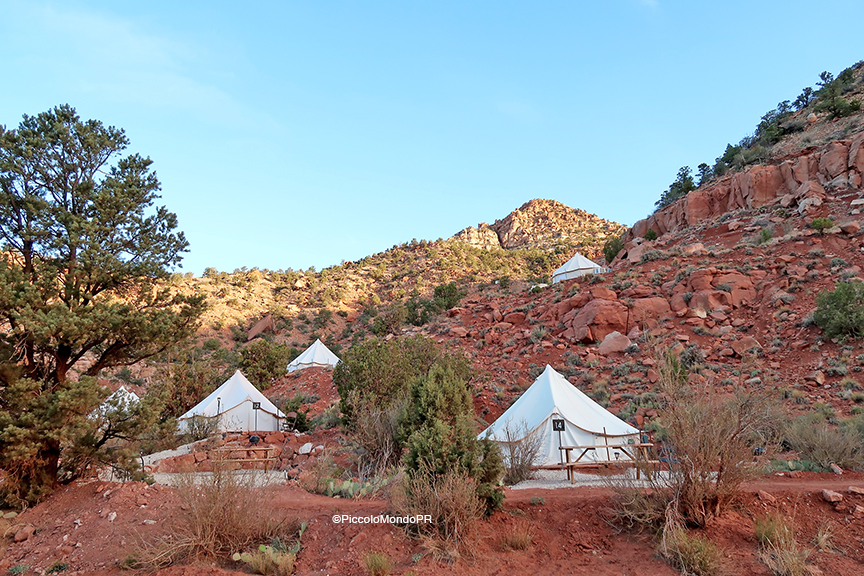 Un glamping en casetas de canvas en las faldas de montañas rocosas que te permite una experiencia bien diferente. Está ubicado en un cañón privado a solo minutos de la autopista, pero a distancia del ajetreo y el bullicio de la ciudad. Cuenta con 22 casetas de canvas en diferentes áreas de la montaña. Tiene una céntrica ubicación cerca del parque nacional de Zion, Coral Pink Sand Dunes, Bryce Canyon, Lake Powell, Grand Canyon y muchas otras áreas en el Gran Círculo de Parques Nacionales. El cañón cuenta con vistas al área silvestre de la Montaña de Canaán. Cada caseta de canvas está configurada para brindar un poco de lujo y privacidad. Incluyen cómodas camas queen, ropa de cama, mesa, sillas y linterna. Los baños y área de cocina es comunal. Nos quedamos aquí después de largo viaje desde Flagstaff, parando en Page para luego visitar Bryce Canyon. https://www.zionglampingadventures.com/