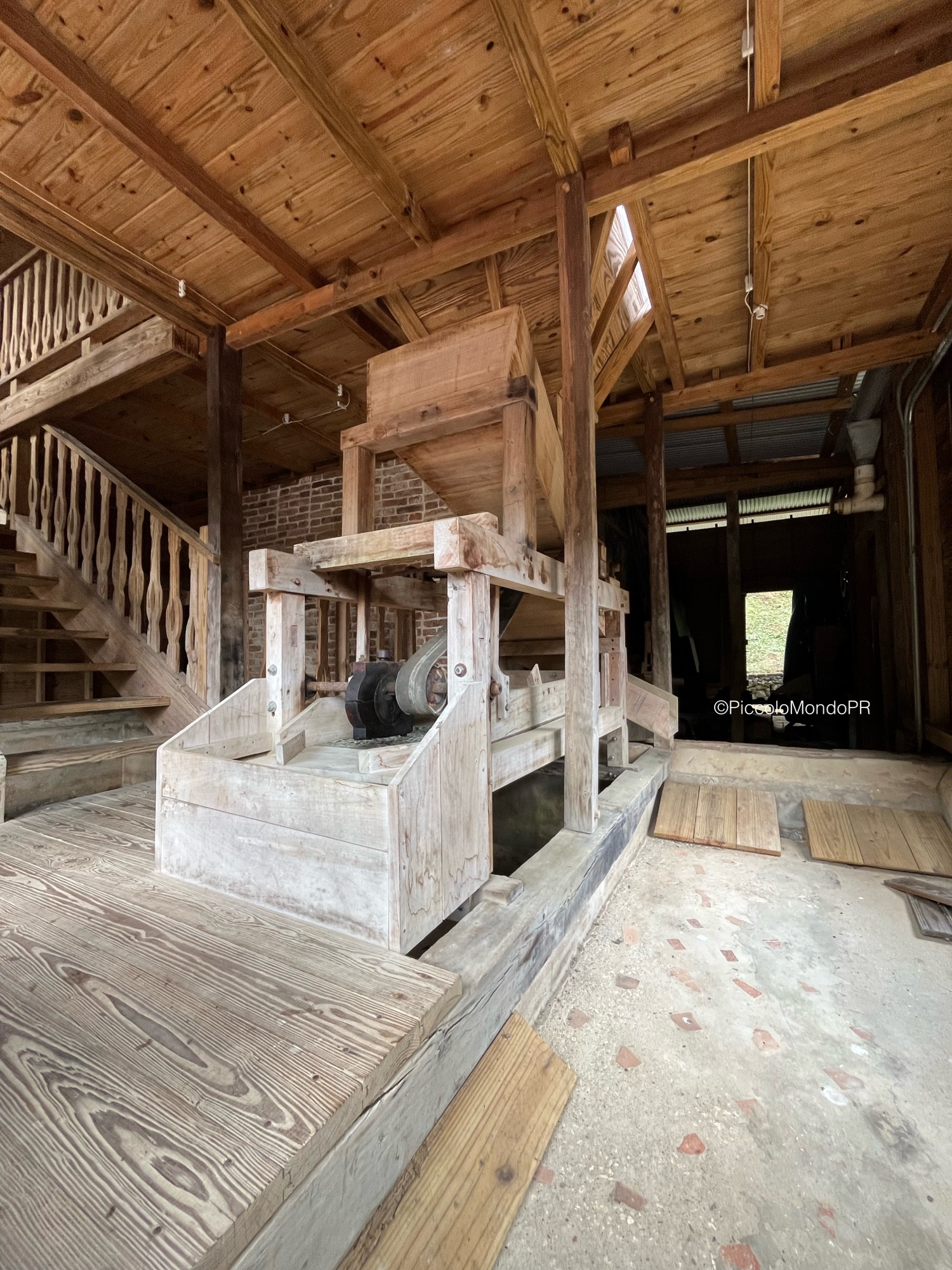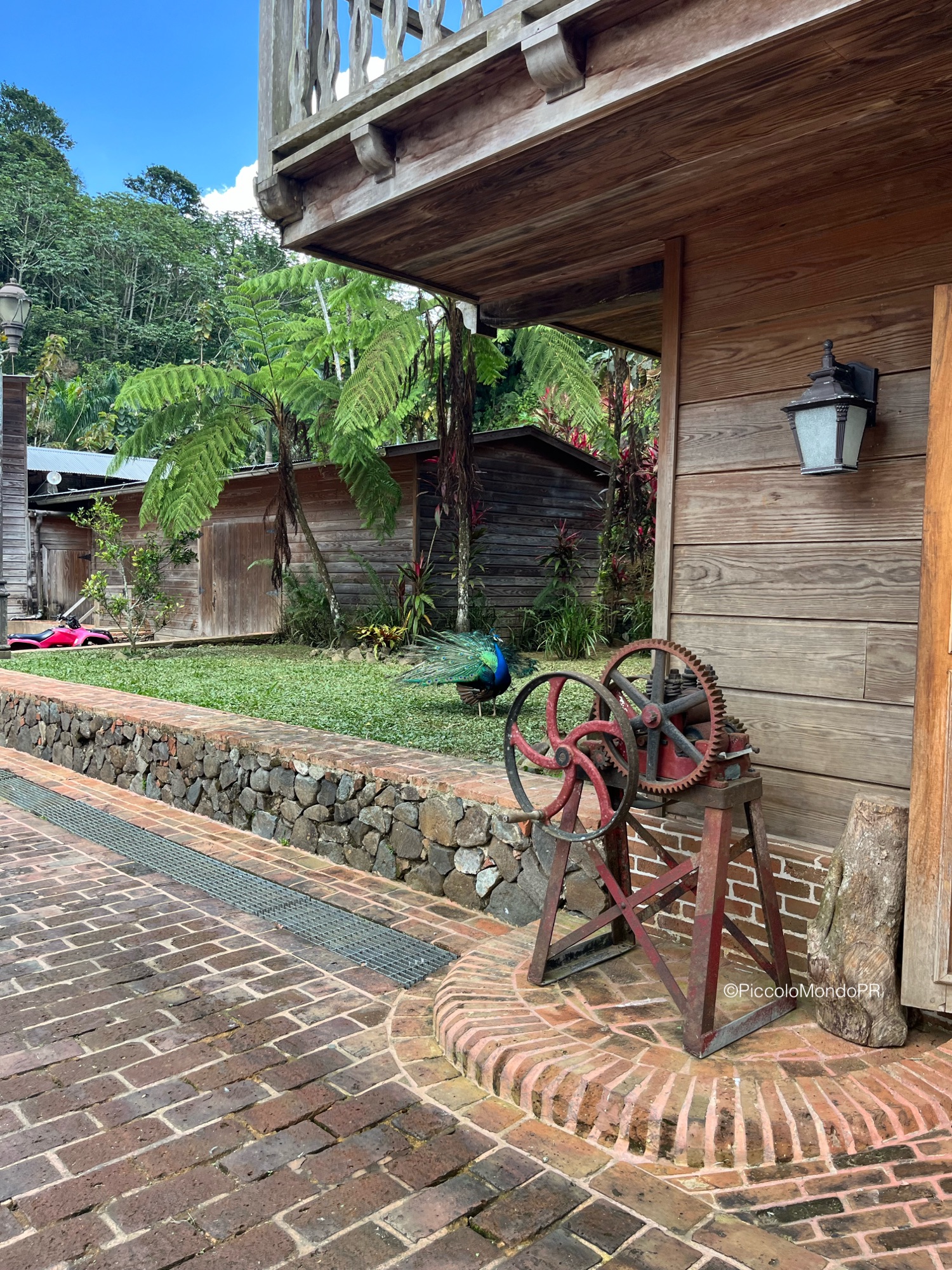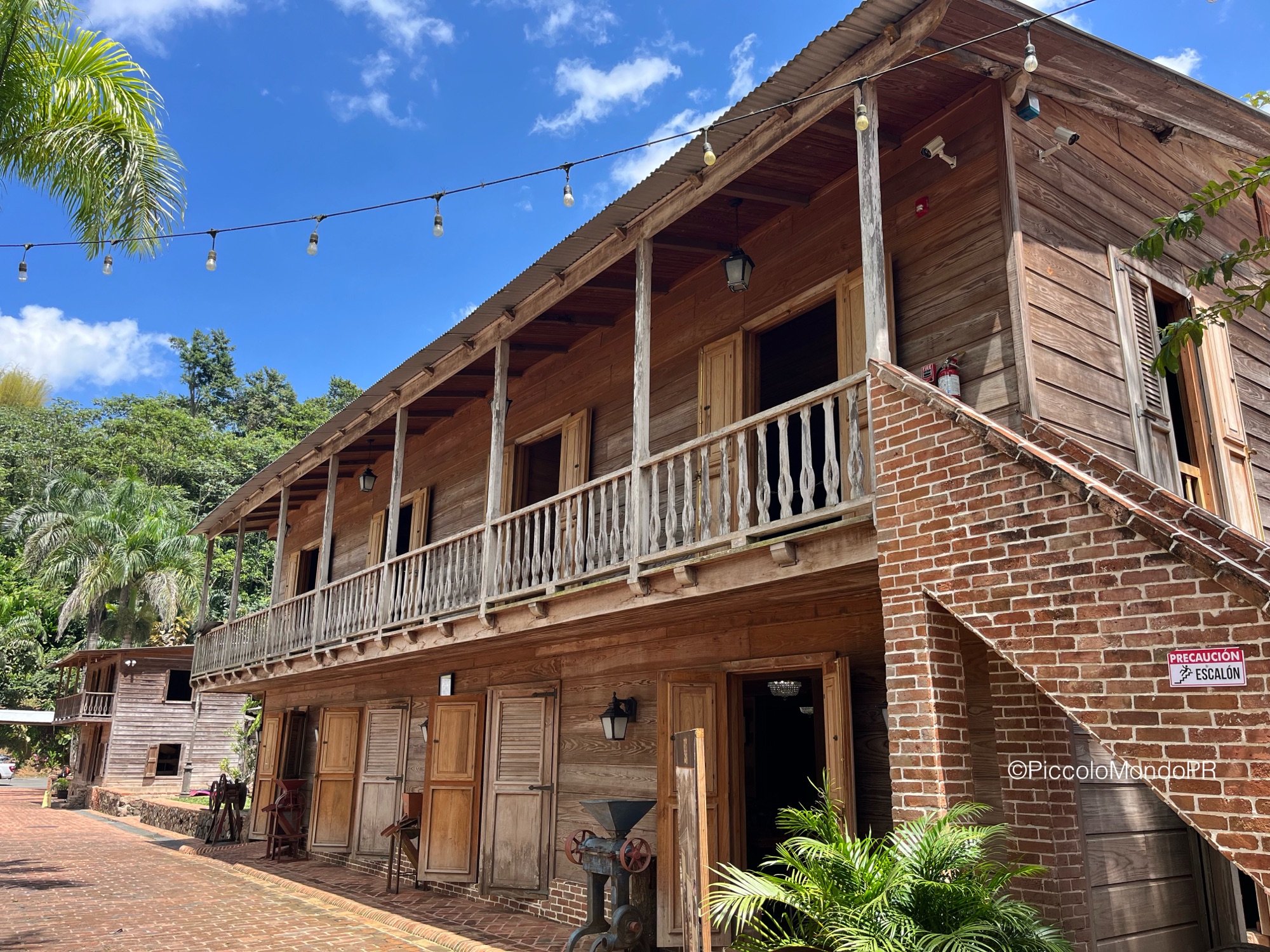 Nuestra guía nos llevó por toda la hacienda mientras nos relataba su fascinante historia: desde su fundación en 1830 por Juan Bautista Plumey un emigrante francés que llegó a Puerto Rico desde Haití con un grupo de personas esclavizadas. Eventualmente la hacienda pasó a manos del español Miguel Marquez Enseñat, y tuvo un gran auge como finca cafetalera en la región, labor que gracias a su restauración se ha promovido. Las estructuras originales, las maquinarias antiguas, los detalles arquitectónicos neoclásicos y la tecnología constructiva de una represa en el río y un gran canal para alimentar de agua una piscina y mover la rueda hidráulica que producía electricidad nos transportaron directamente al siglo XIX.