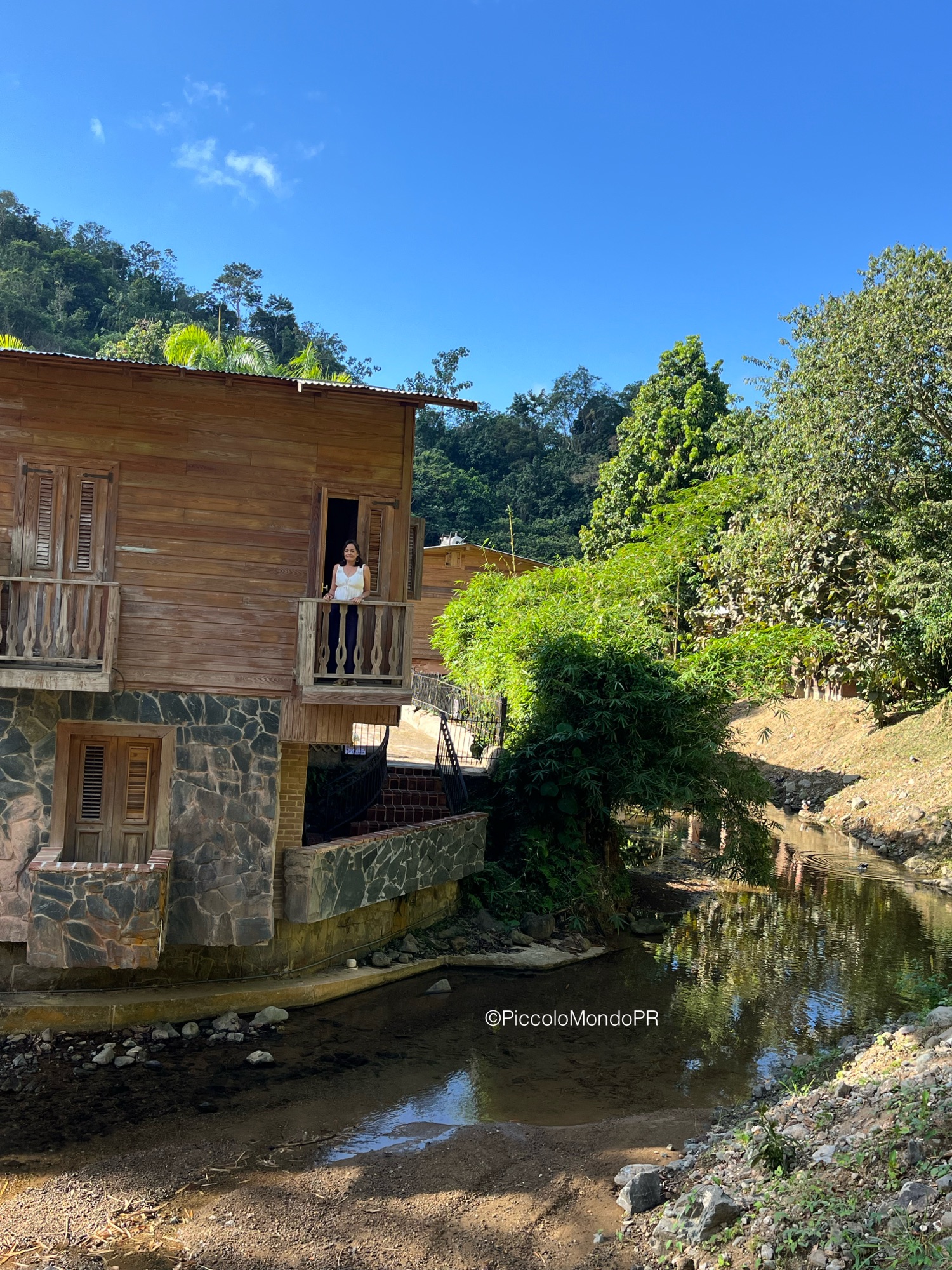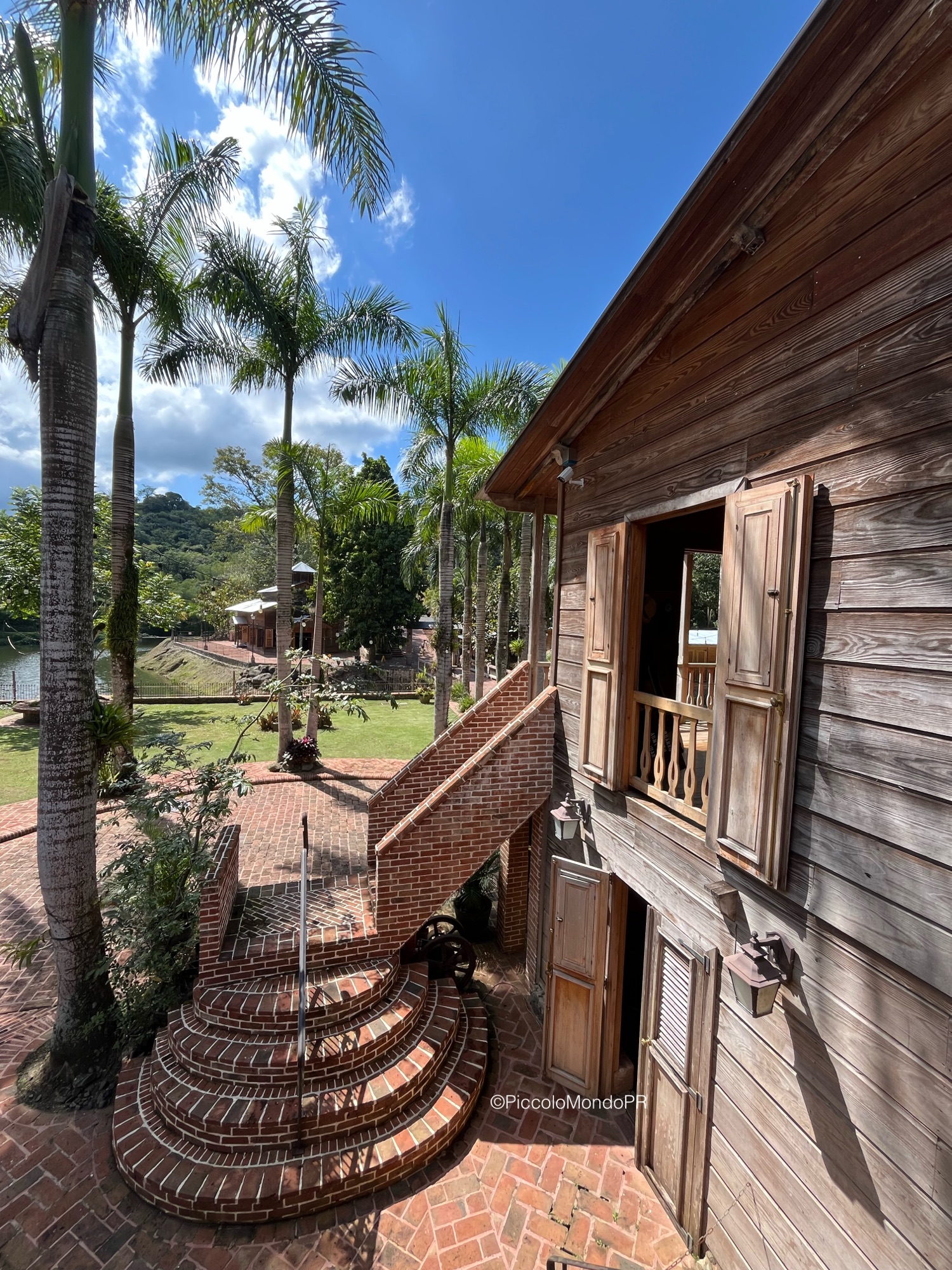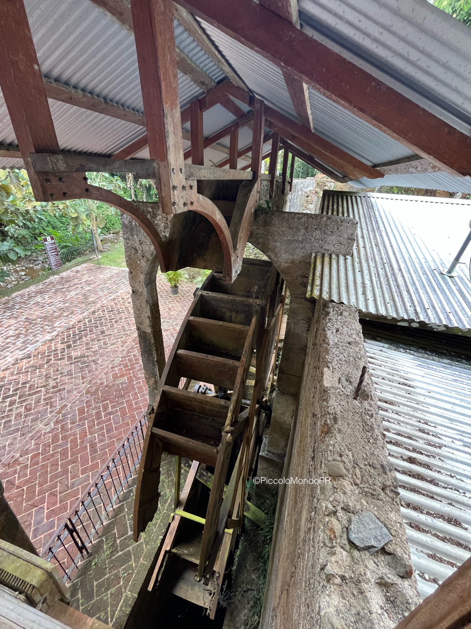 Nuestra guía nos llevó por toda la hacienda mientras nos relataba su fascinante historia: desde su fundación en 1830 por Juan Bautista Plumey un emigrante francés que llegó a Puerto Rico desde Haití con un grupo de personas esclavizadas. Eventualmente la hacienda pasó a manos del español Miguel Marquez Enseñat, y tuvo un gran auge como finca cafetalera en la región, labor que gracias a su restauración se ha promovido. Las estructuras originales, las maquinarias antiguas, los detalles arquitectónicos neoclásicos y la tecnología constructiva de una represa en el río y un gran canal para alimentar de agua una piscina y mover la rueda hidráulica que producía electricidad nos transportaron directamente al siglo XIX.