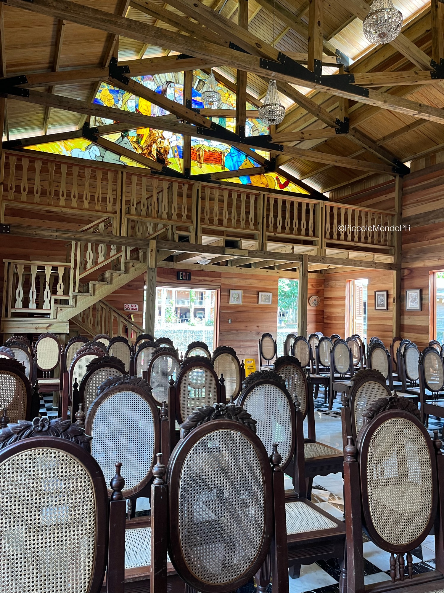 Al llegar, el paisaje te recibe con una mezcla de historia, naturaleza y tranquilidad. Iniciamos nuestra visita con el recorrido histórico guiado, el cual comienza en una hermosa capilla construida en madera, piedra y vitrales. Esta joya arquitectónica, ideal para bodas y celebraciones especiales, marca el punto de partida perfecto para una travesía por el tiempo. Aunque no forma parte de las estructuras originales de la hacienda, esta capilla cuenta con mobiliario que recrea la época histórica del lugar.