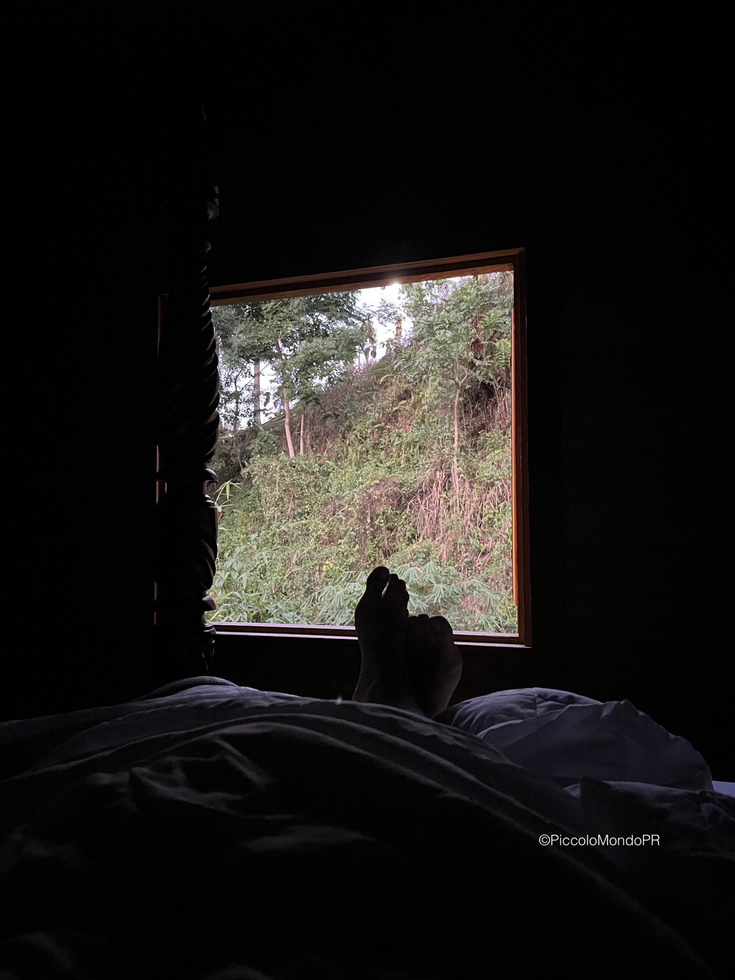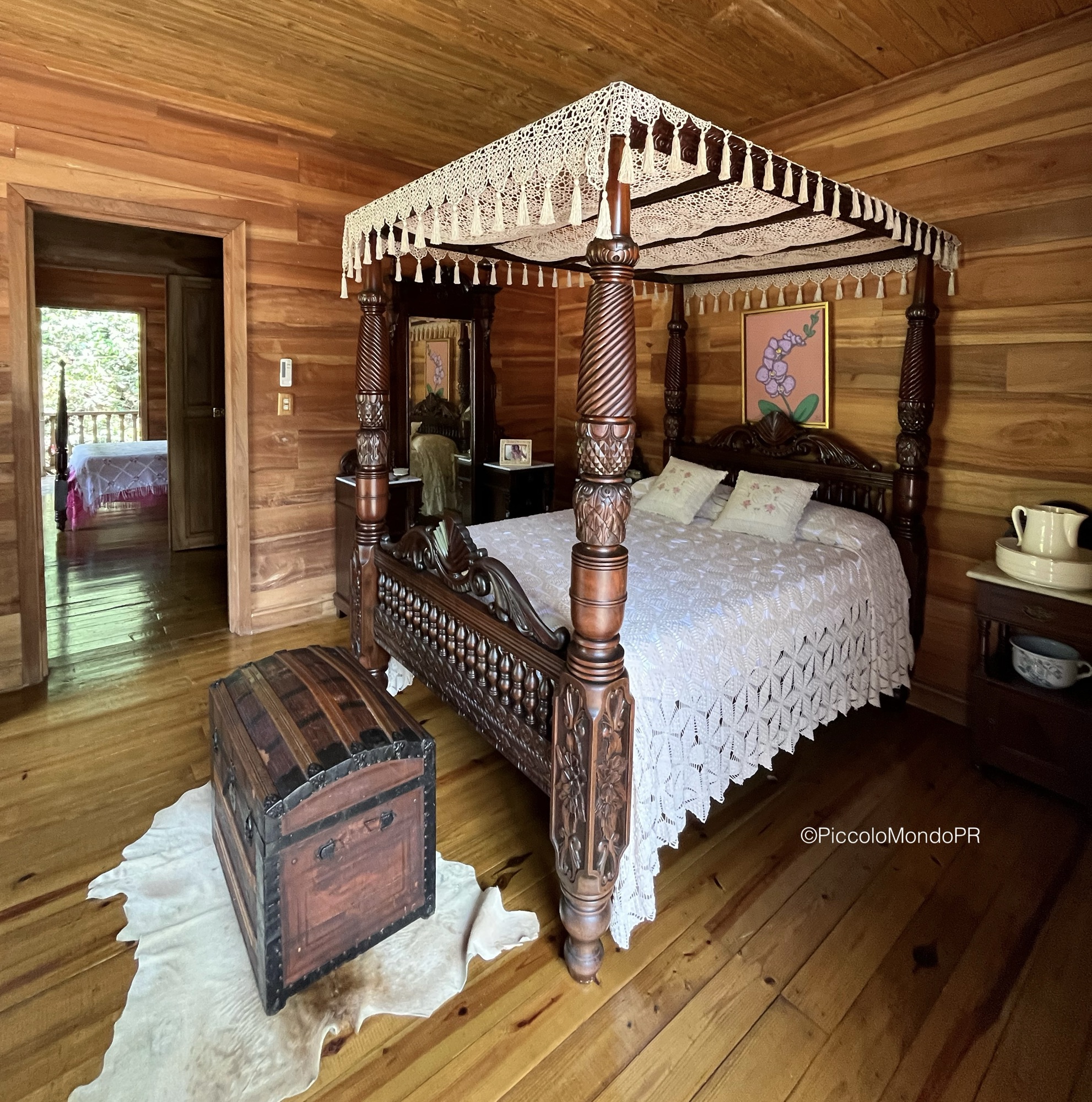 Decidimos quedarnos en una de las habitaciones de la hacienda. ¡Y qué experiencia! Las habitaciones están decoradas en madera, con camas altas de pilares y detalles antiguos que conservan la esencia de la época. Tuvimos la suerte de hospedarnos en una habitación especial con ventana al río, cuyo sonido nos acompañó durante la noche. Estas habitaciones están disponibles a través de Airbnb.