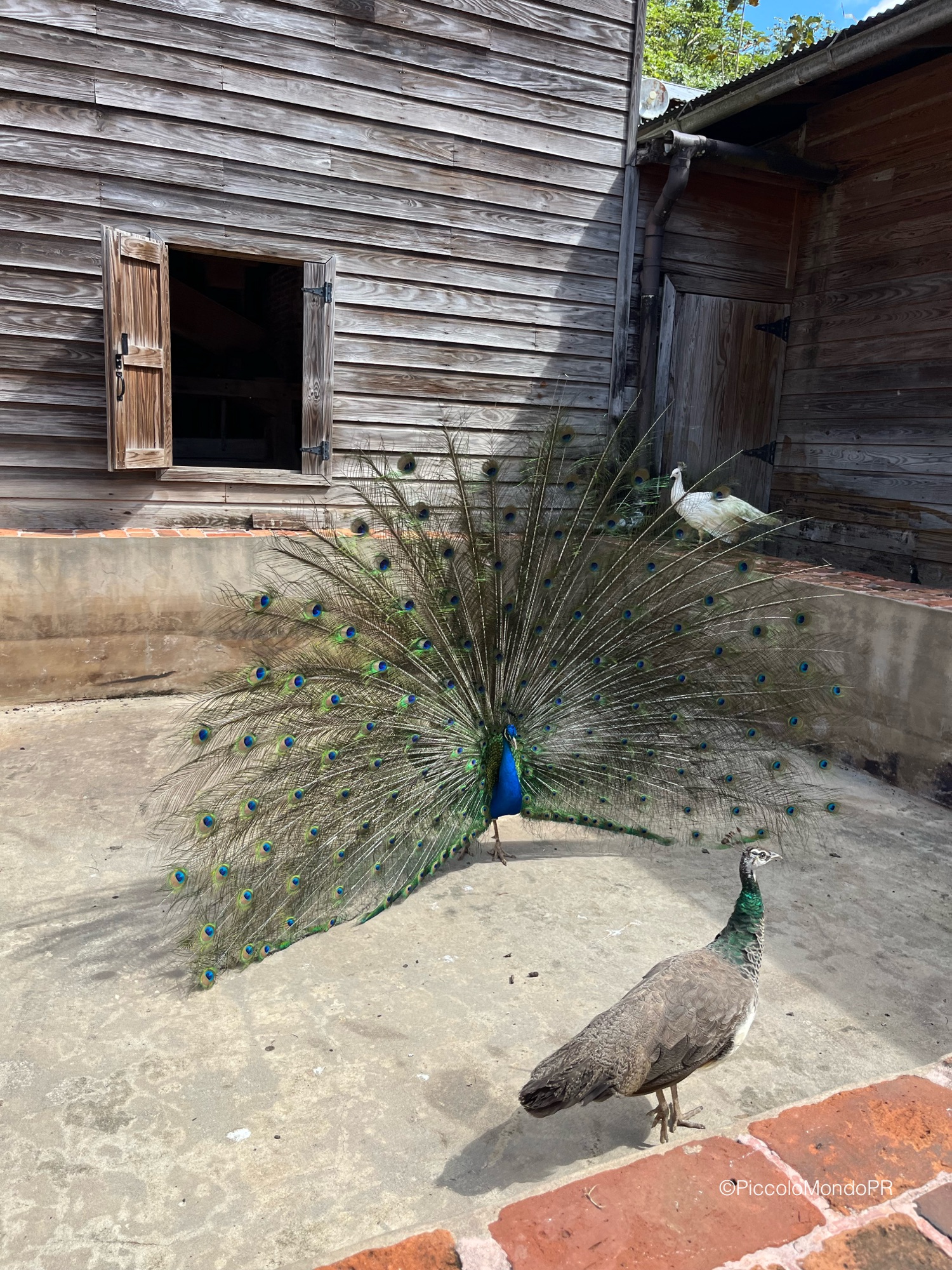 Naturaleza, café y pavos reales