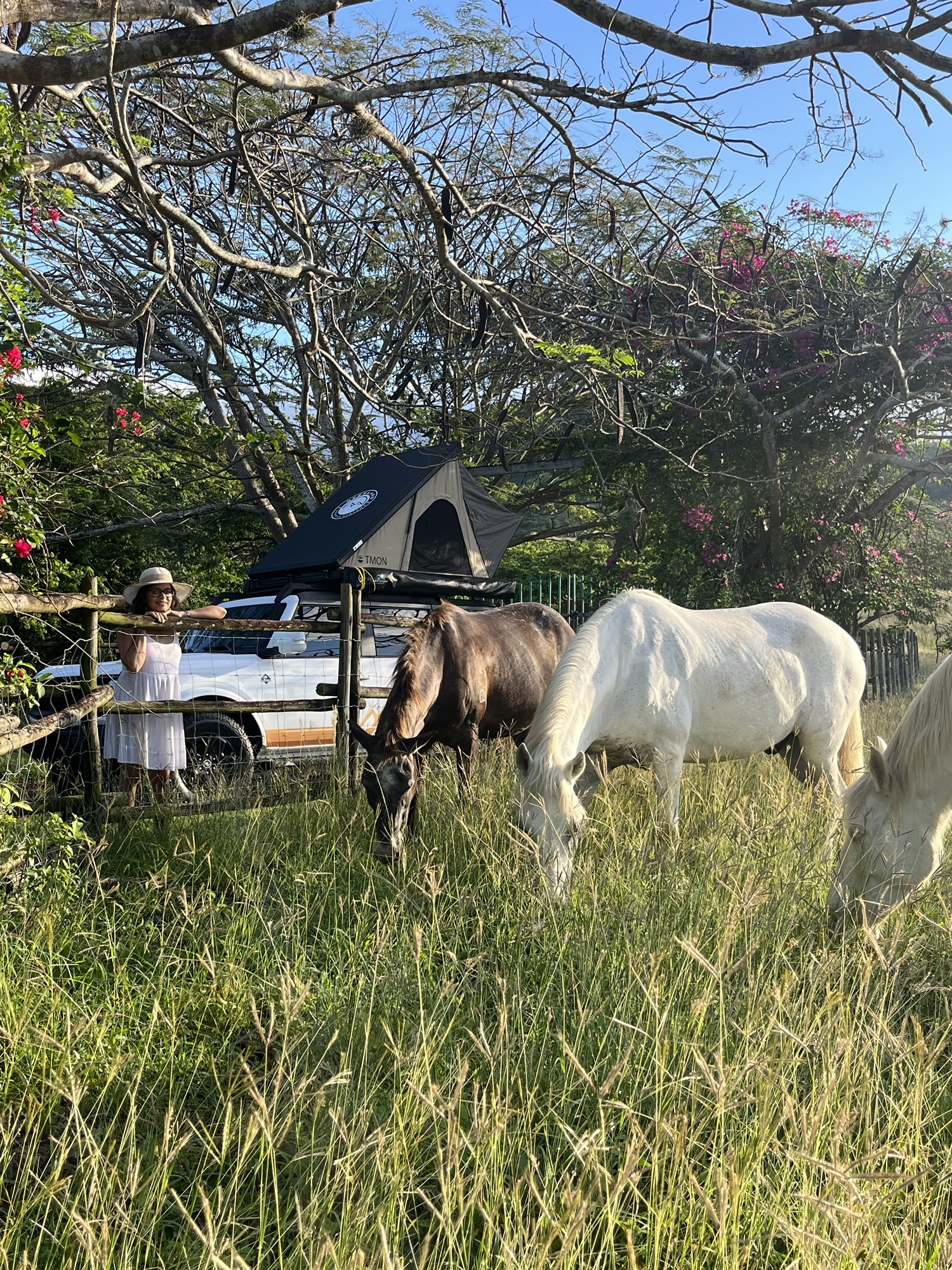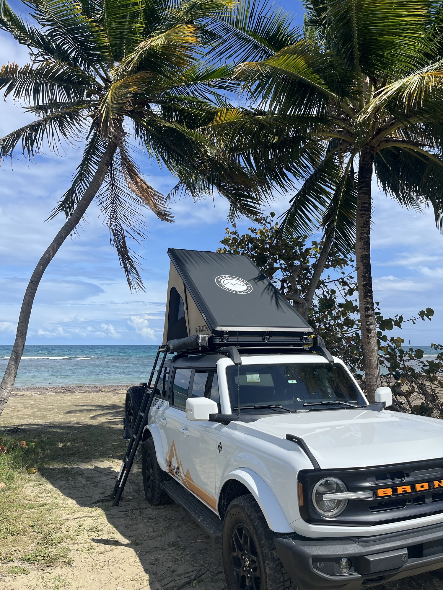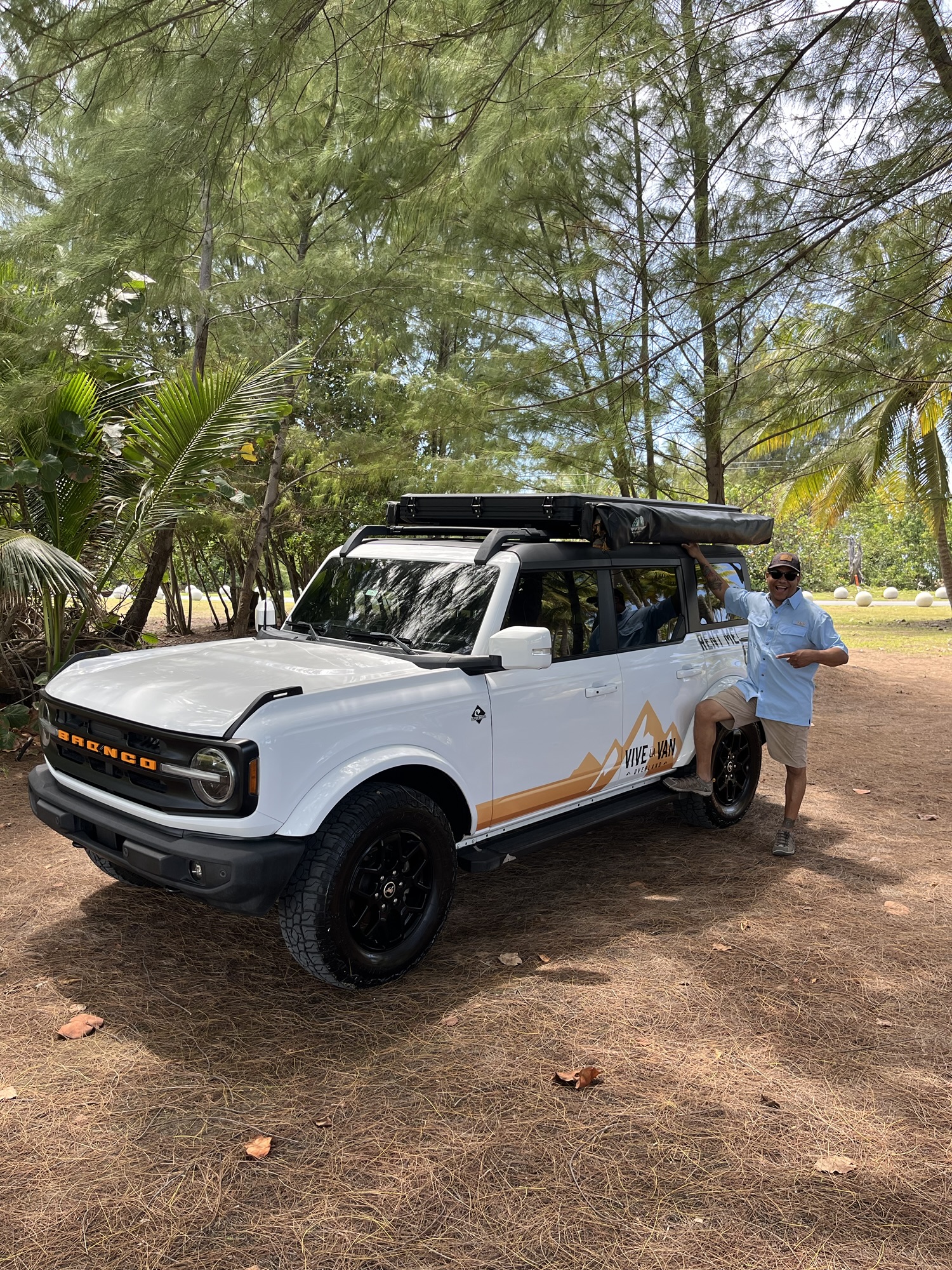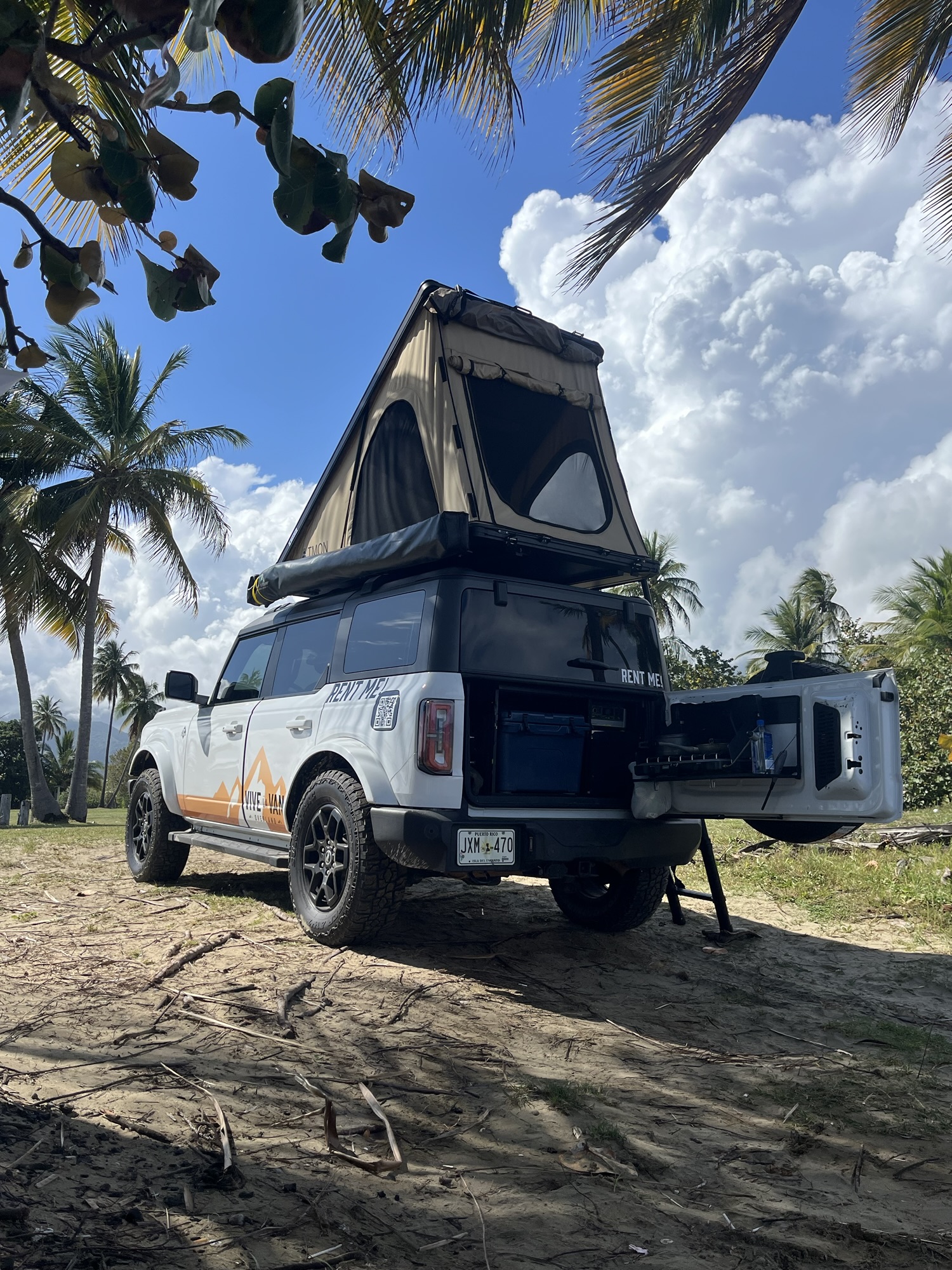 Después de la experiencia en familia en la van Frida, seguimos explorando la experiencia de camping en otro de los vehículos de Vive La Van. Me fui con Mariel (mamá píccolo) en la Bronco, un vehículo todo terreno, más compacto, estilo overland, con caseta desplegable en el techo, nevera de camping y estufa de gas en la parte trasera, y en el exterior una cortina para ducha y uso de inodoro portátil, así como un toldo integrado para la sombra. ¡Una máquina diseñada para la aventura! Visitamos Coamo, Arroyo y otros rincones, siempre con lo esencial a la mano.
