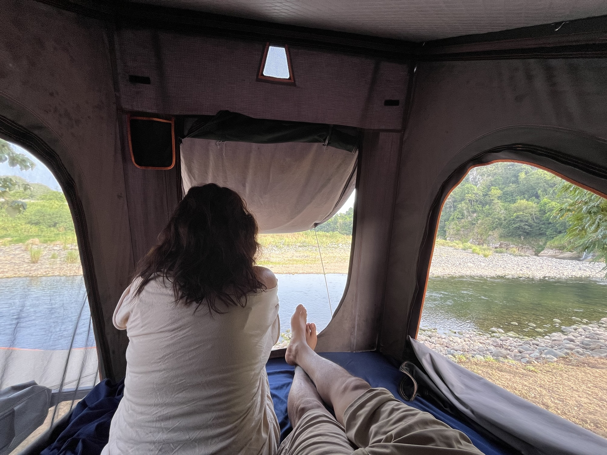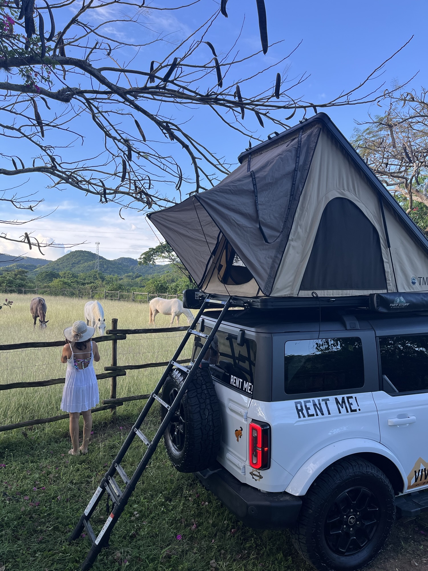 After the family trip in Frida, I wanted to keep the camper van experience going. I went on another adventure with Mariel (a.k.a. mamá píccolo) in the Bronco, a more compact off-road overland vehicle, equipped with a rooftop tent, a camping fridge, and a gas stove in the back. On the outside, it even had a privacy curtain for showering or using a portable toilet, plus an integrated awning for shade.
