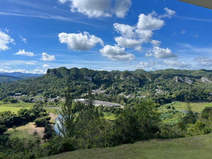 Desde que subimos a la guagua, sabíamos que sería un día distinto. Los guías de Sofrito nos recibieron con historias, anécdotas y buena vibra. Nuestra primera parada fue en el Paseo Lineal Juan Antonio Corretjer, una antesala perfecta para entrar en sintonía con la esencia del pueblo y una vista expectacular. Después pasamos por el casco urbano de Ciales, donde vimos desde la guagua el antiguo Casino de Ciales —espacio que se busca restaurar como el futuro Centro Cultural Yerba Bruja. Aquí es donde esta ruta toma más fuerza: una parte de los ingresos de cada tour apoya esta causa comunitaria. Y eso, simplemente, toca el corazón.