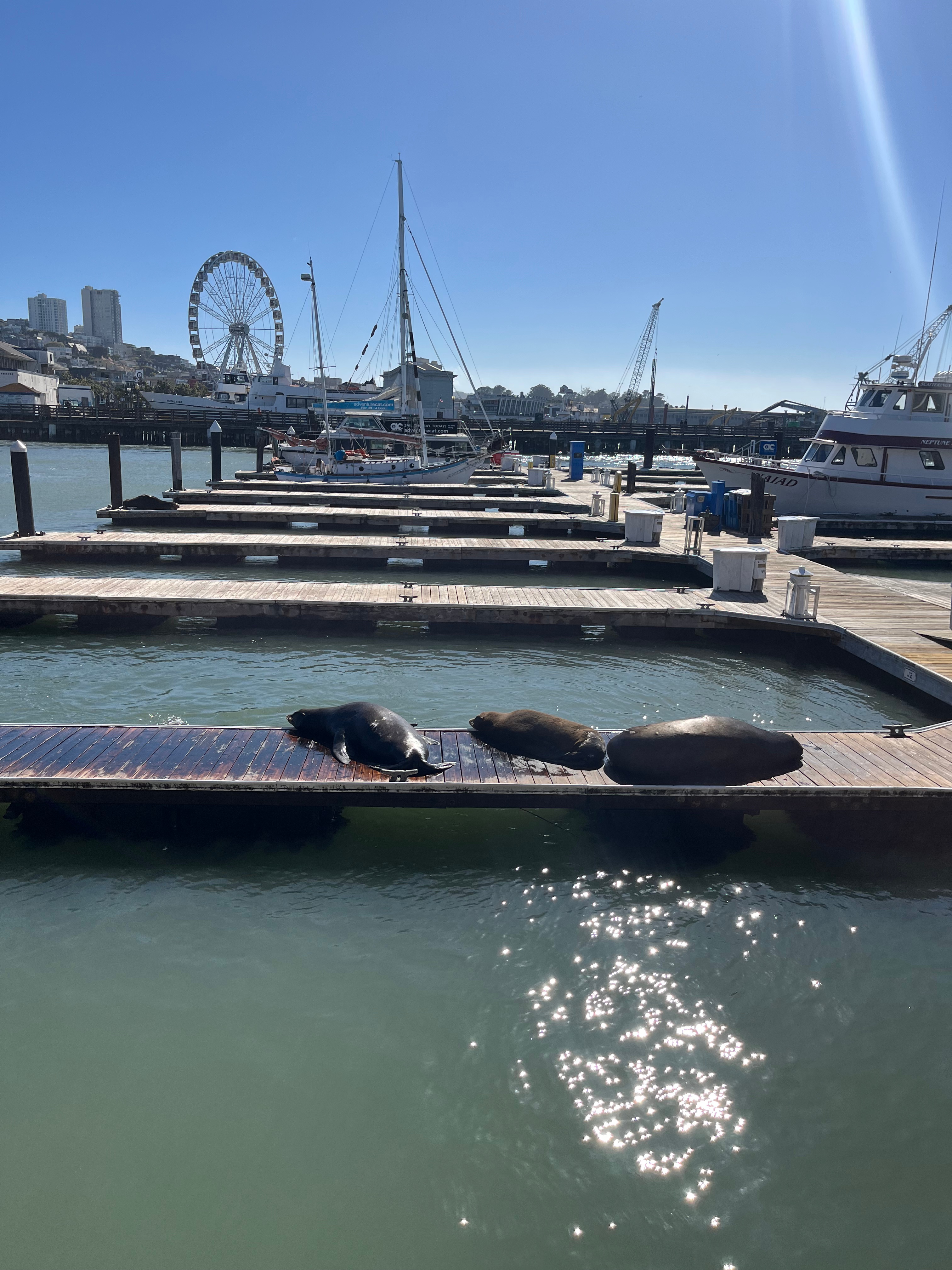 En el Pier 39, los protagonistas son los simpáticos leones marinos, que descansan perezosos sobre los muelles flotantes. Este es también un excelente punto para comprar recuerdos, probar un clam chowder en pan de masa madre y ver el atardecer sobre el Golden Gate.