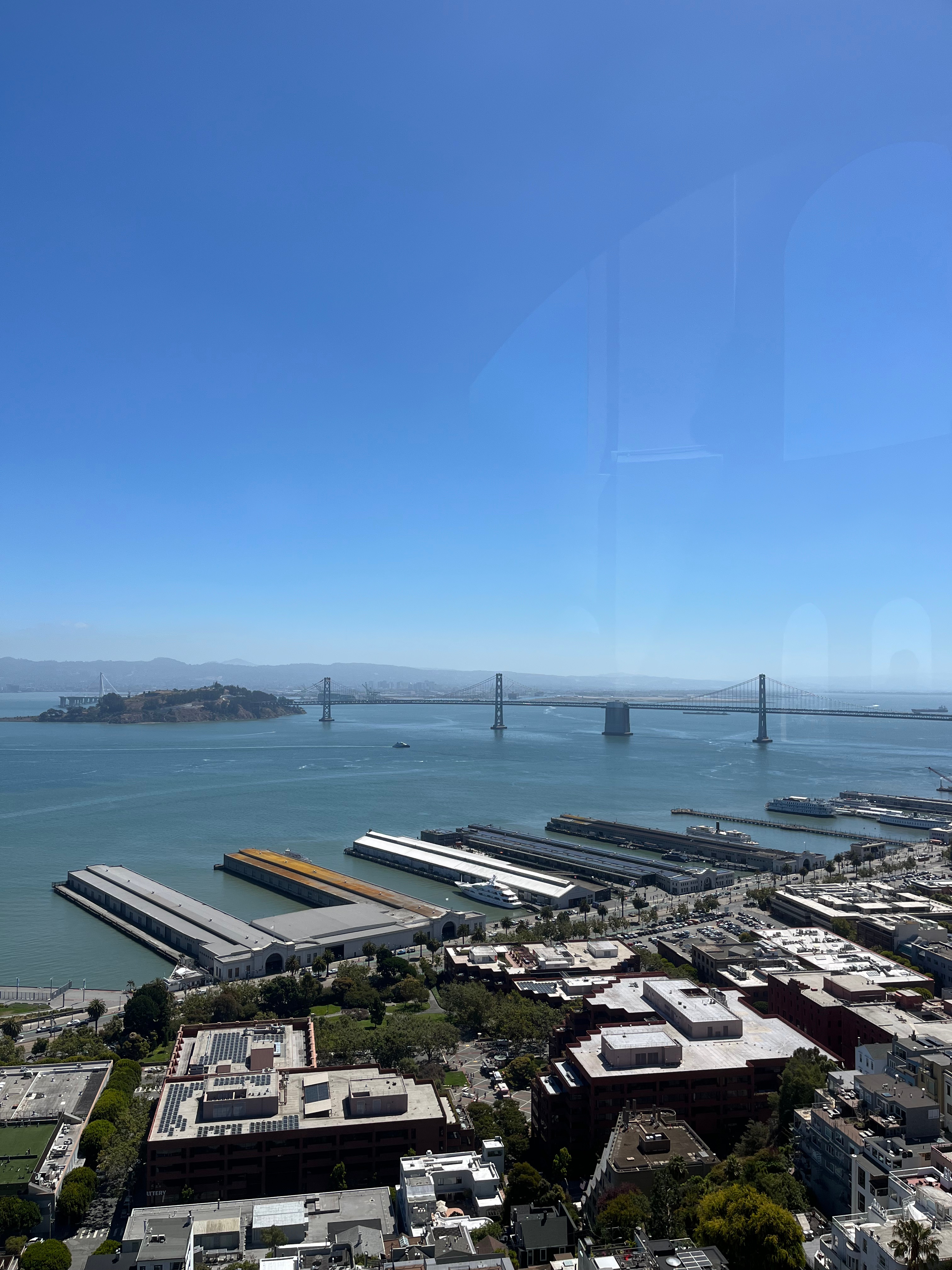 El corazón turístico del puerto de San Francisco. Aquí la brisa marina se mezcla con el olor a pan sourdough recién horneado y mariscos frescos. Paseamos entre tiendas y restaurantes, admirando la vista hacia la bahía y la isla de Alcatraz al fondo.
