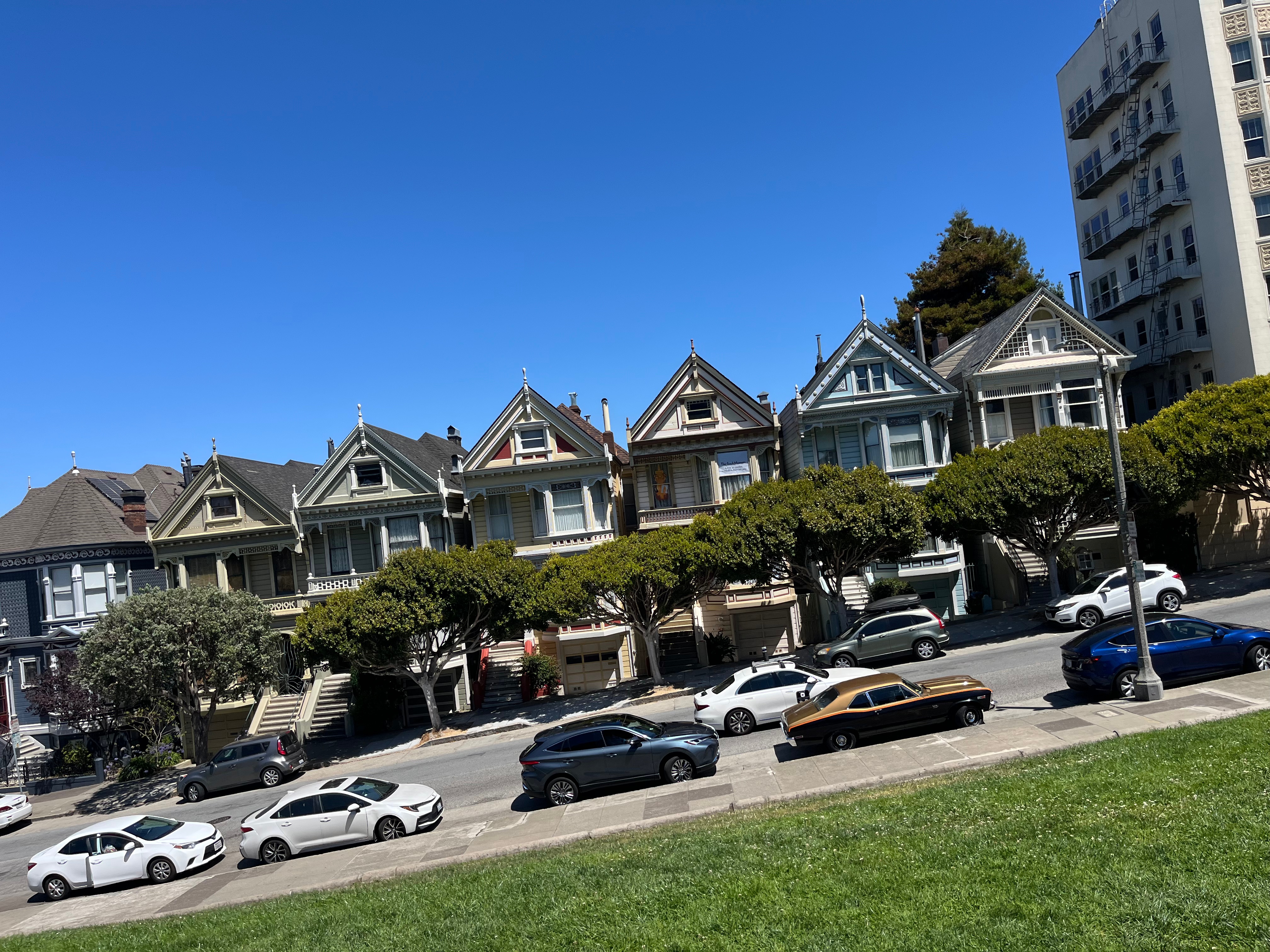 Pasamos por el legendario barrio Haight-Ashbury, epicentro del movimiento hippie de los años 60. Las calles están llenas de tiendas vintage, murales coloridos y cafés alternativos.